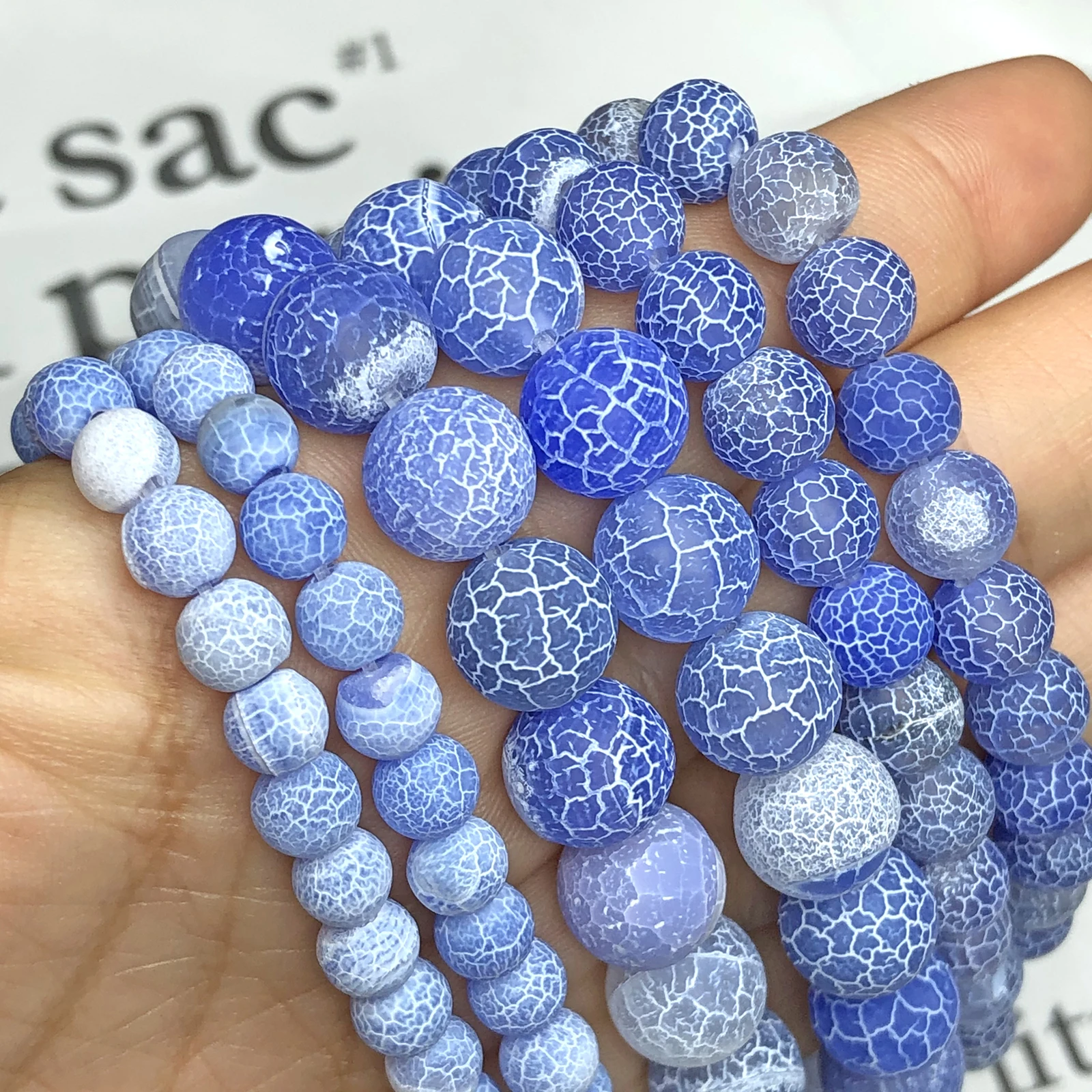 Натуральные Цветные Мороз трещины Бусы из камня Агата Круглые бусин...