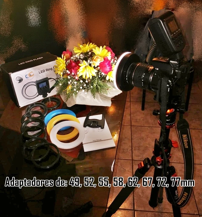 Светодиодная Кольцевая вспышка для макросъемки с 8 переходными кольцами для фотоаппаратов Nikon Canon Pentax Olympus Panasonic