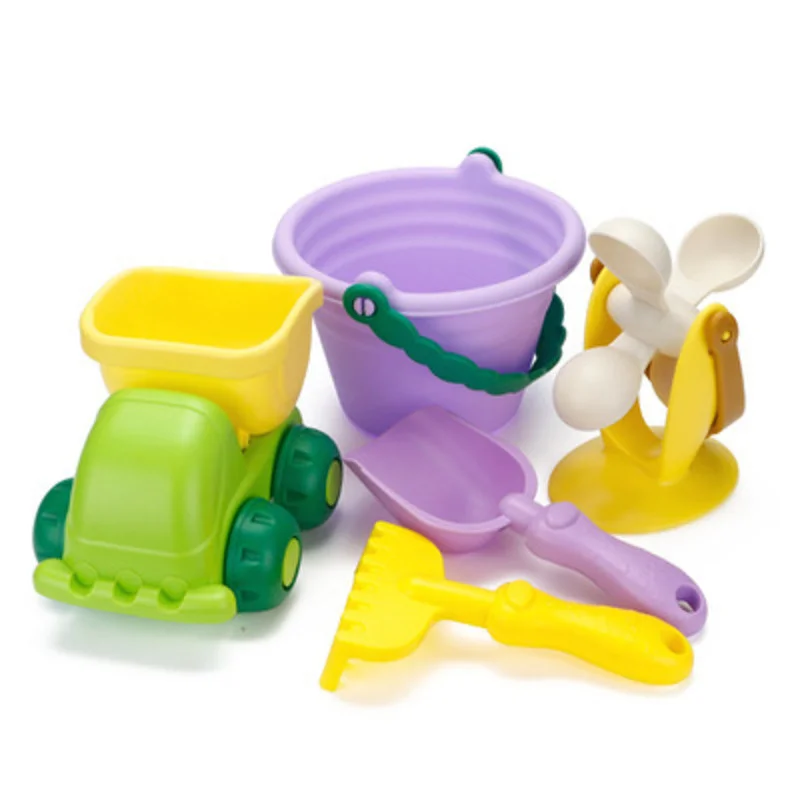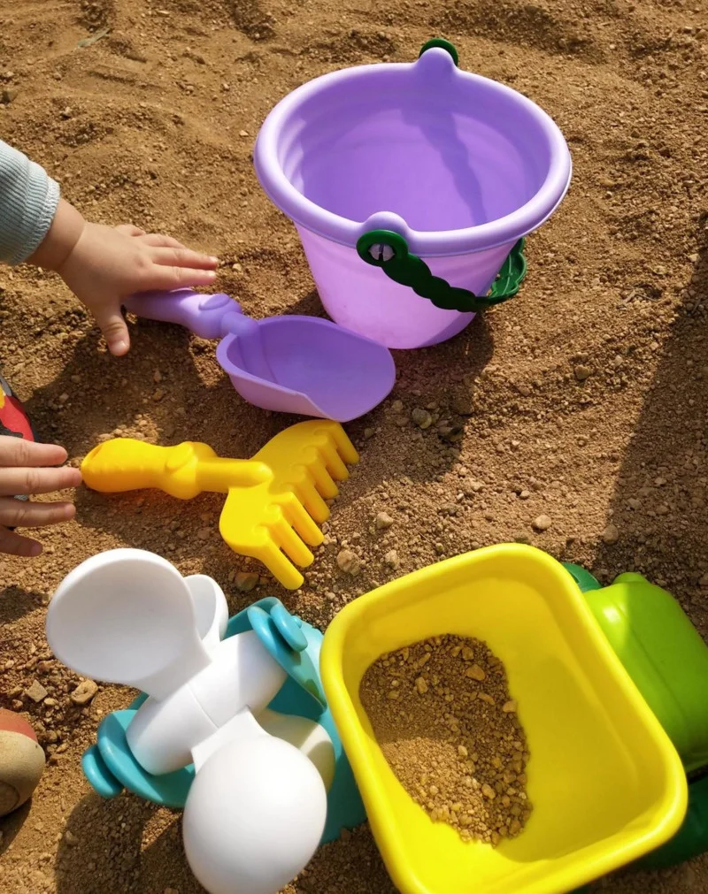 Набор детских игрушек для пляжа, из силикона, с лопаткой и песочницей