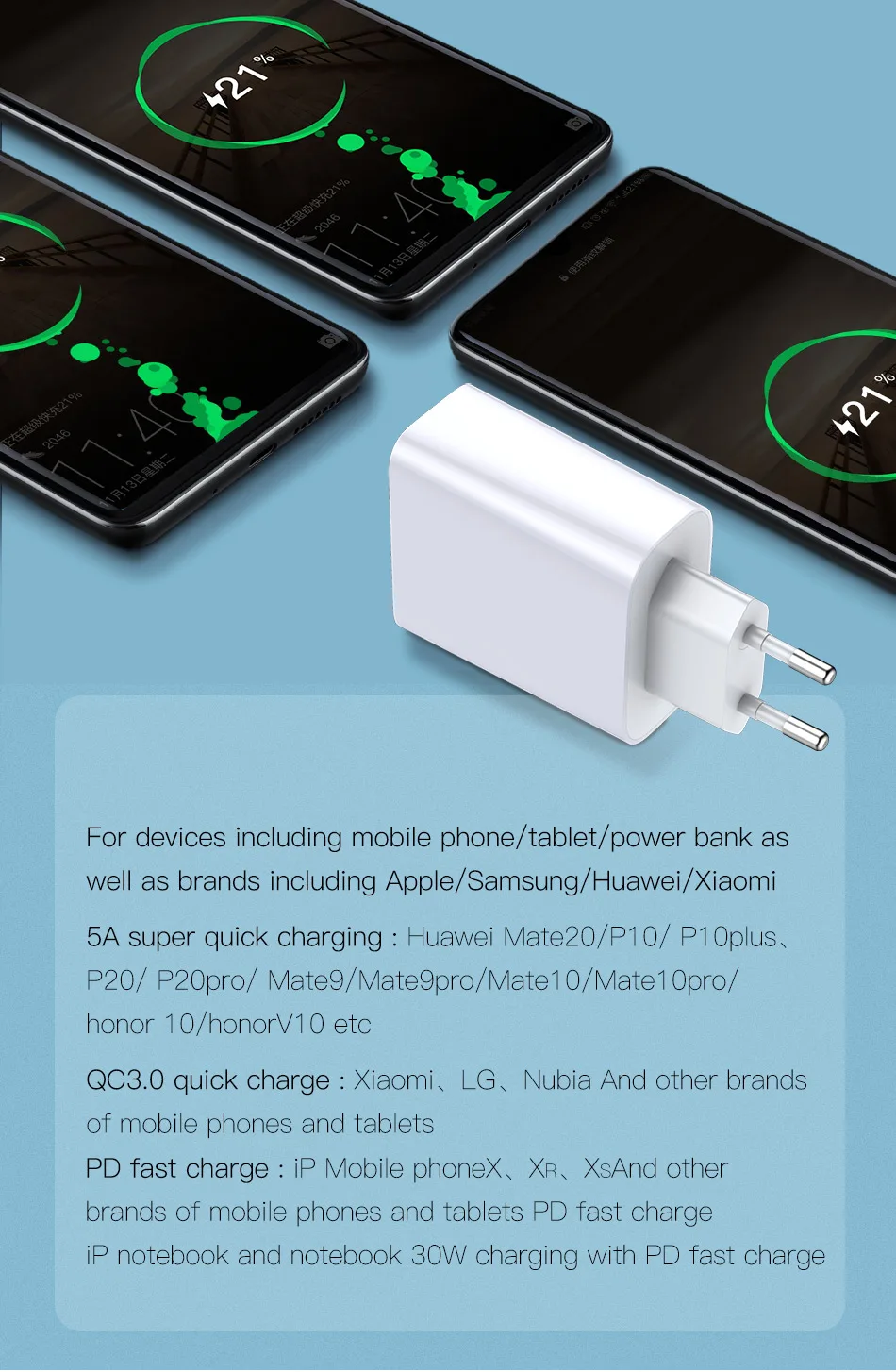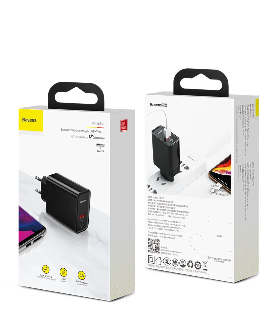 Зарядное устройство Baseus с USB-портом для быстрой зарядки 4,0, 3,...