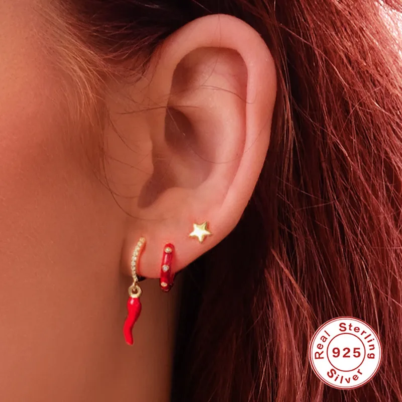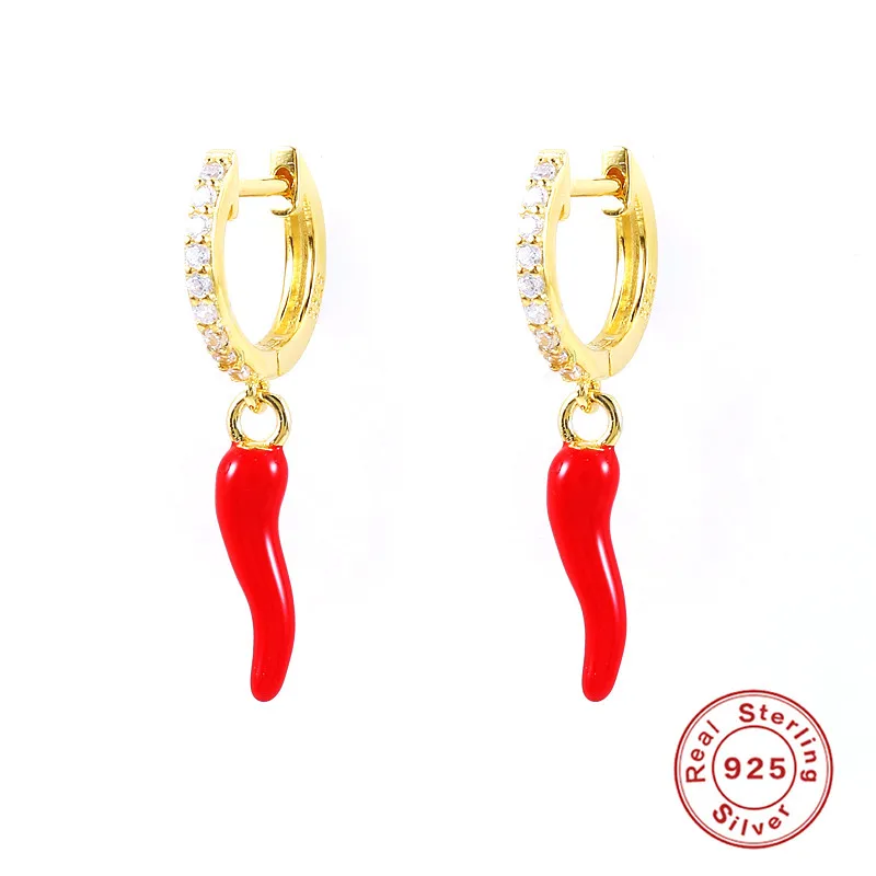 【Item Type】: красные чили серьги-кольца, покрытые эмалью
