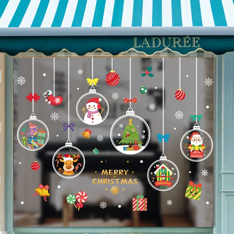 Новинка 2021, Рождественские декоративные наклейки, статические наклейки в виде Санта-Клауса, лося, комбинированные оконные стеклянные рождественские украшения