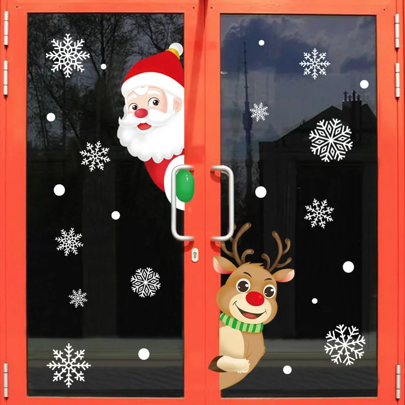 Рождественские наклейки на окна Санта-Клаус Снежинка Лось Рождестве...