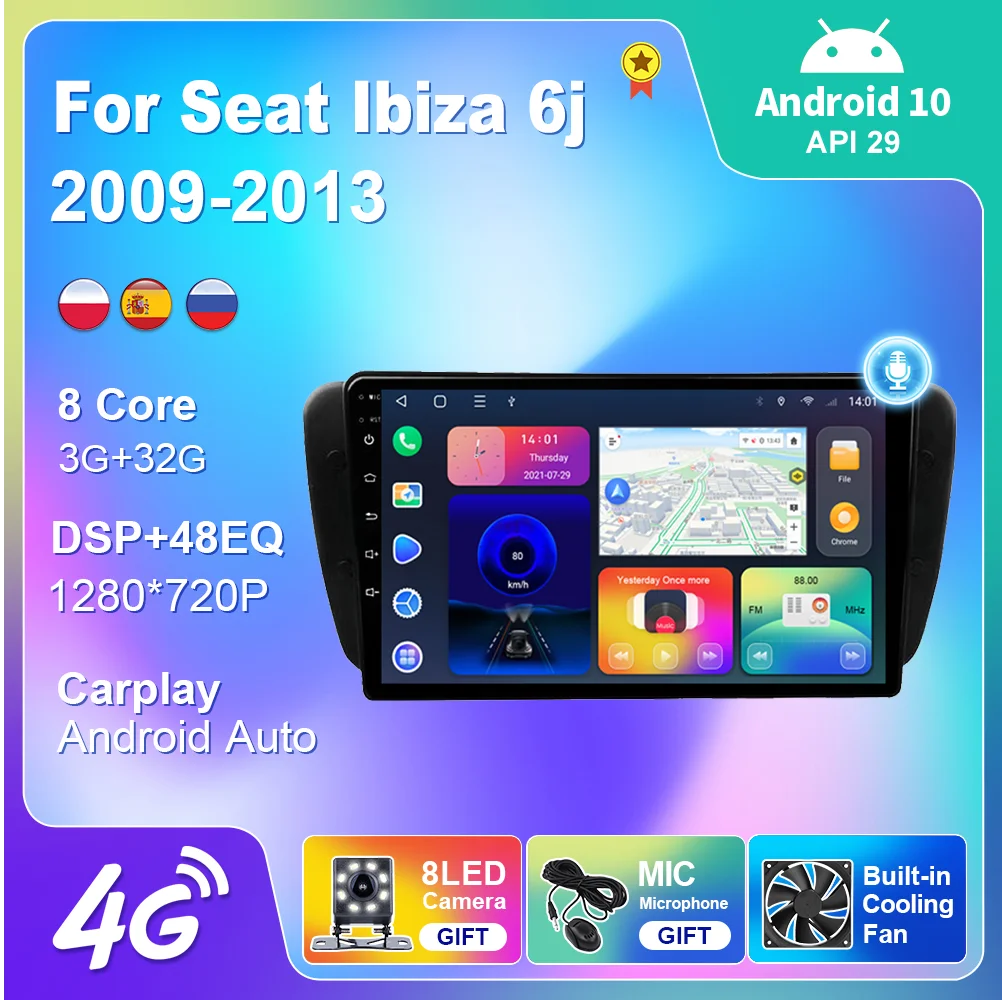 Автомагнитола для Seat Ibiza 6j 2009-2013, навигация GPS, Android 10, автомобильное стерео видео, Carplay, аудио, Wi-Fi, автомобильные товары
