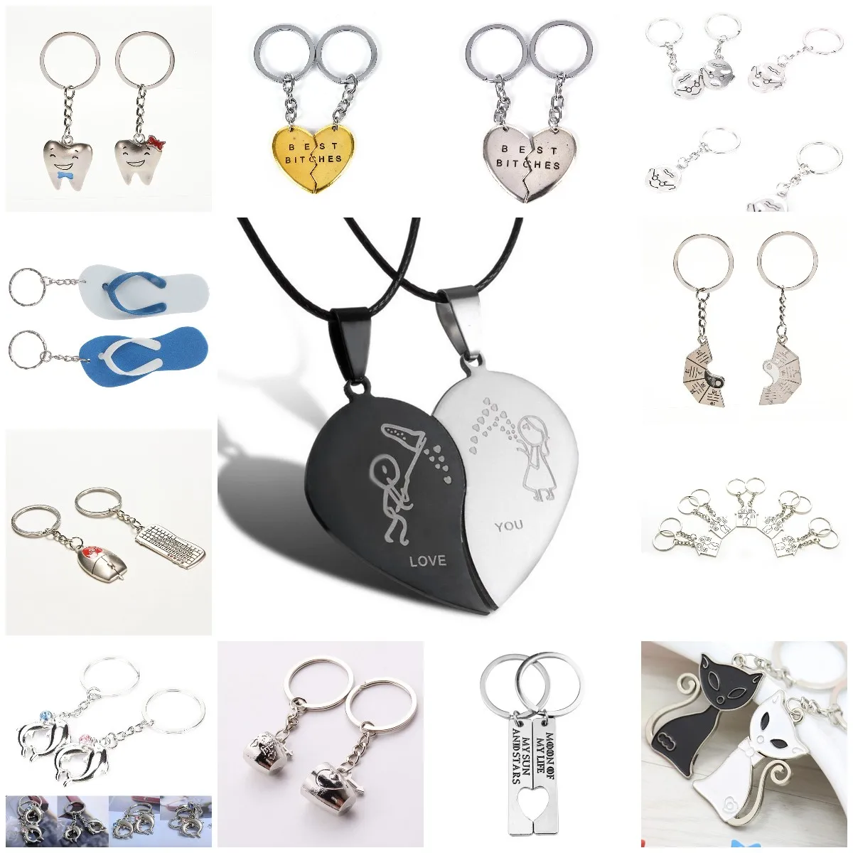 Одна пара посеребренных брелоков из цинкового сплава для влюбленных
