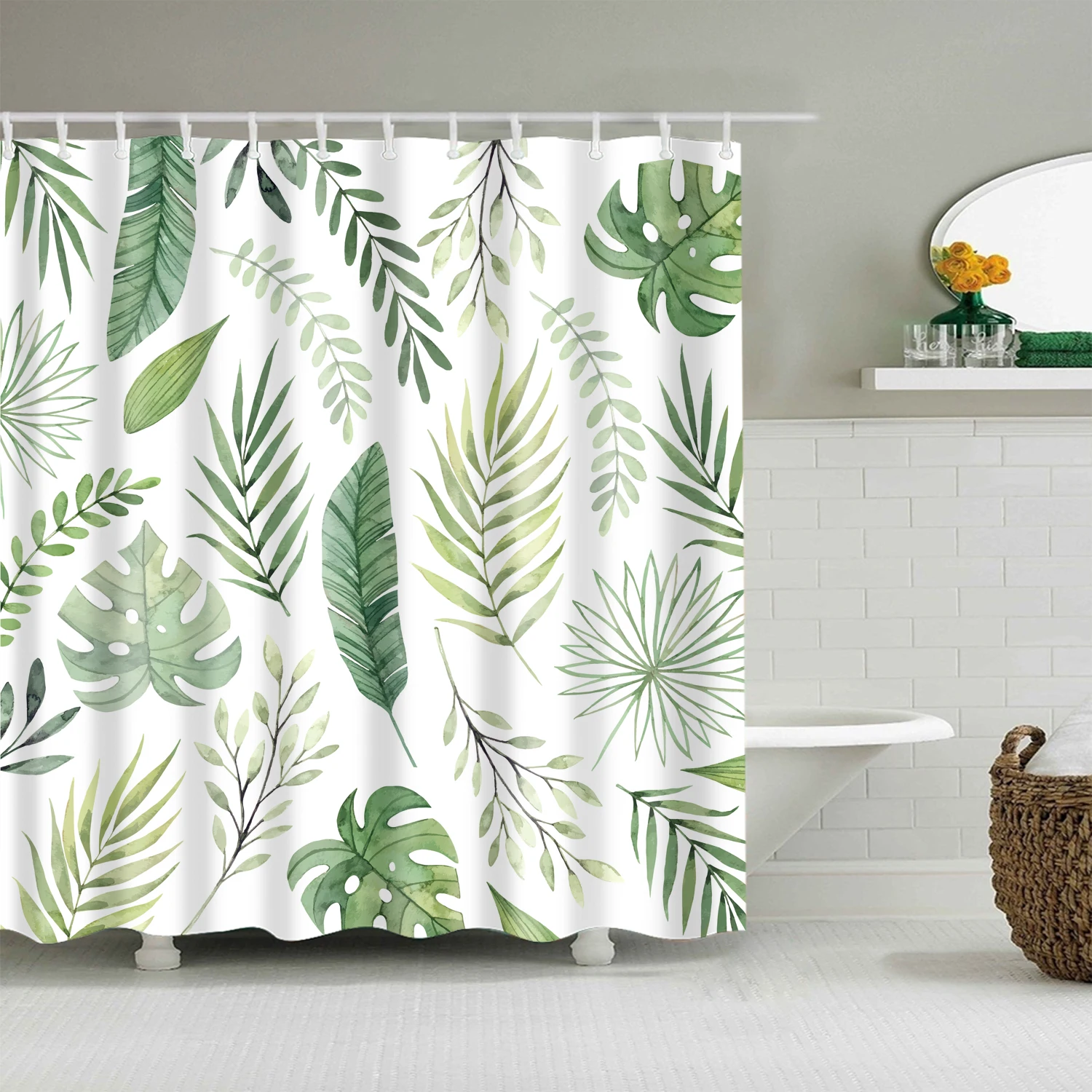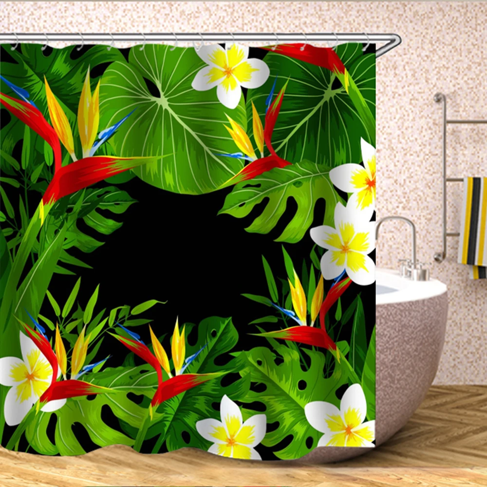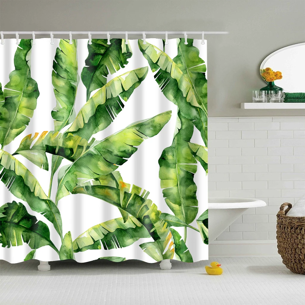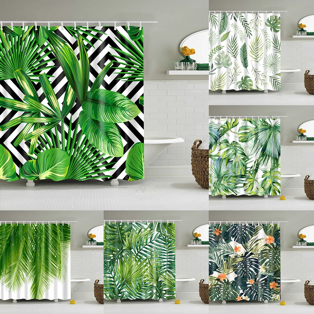 Набор тканей для декора тропических зеленых растений, Листьев, цветов, современный лес, водонепроницаемая ткань из полиэстера, занавеска для ванны и душа с крючками