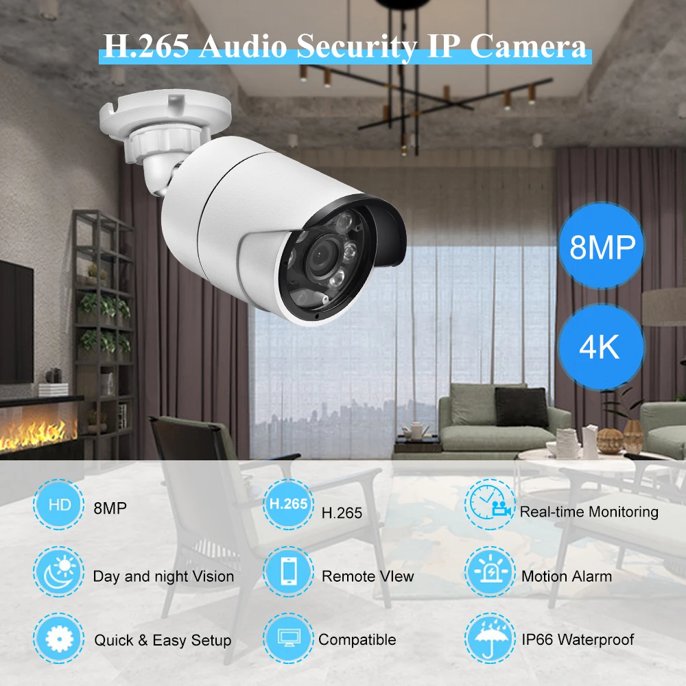 Наружная уличная IP-камера Gadinan 8 МП 4K H.265 Металлическая Цилиндрическая камера видеонаблюдения спектр ночного видения IR POE видео аудио домашняя камера видеонаблюдения