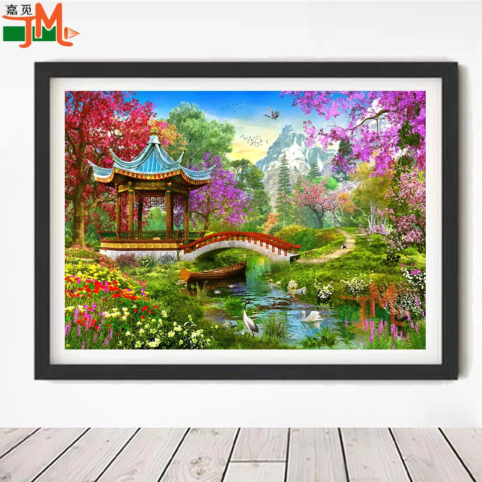 Японское садовое настенное искусство полная алмазная живопись павильон крепление Fuji Цветочное дерево Стразы Вышивка мозаика вышивка крестиком