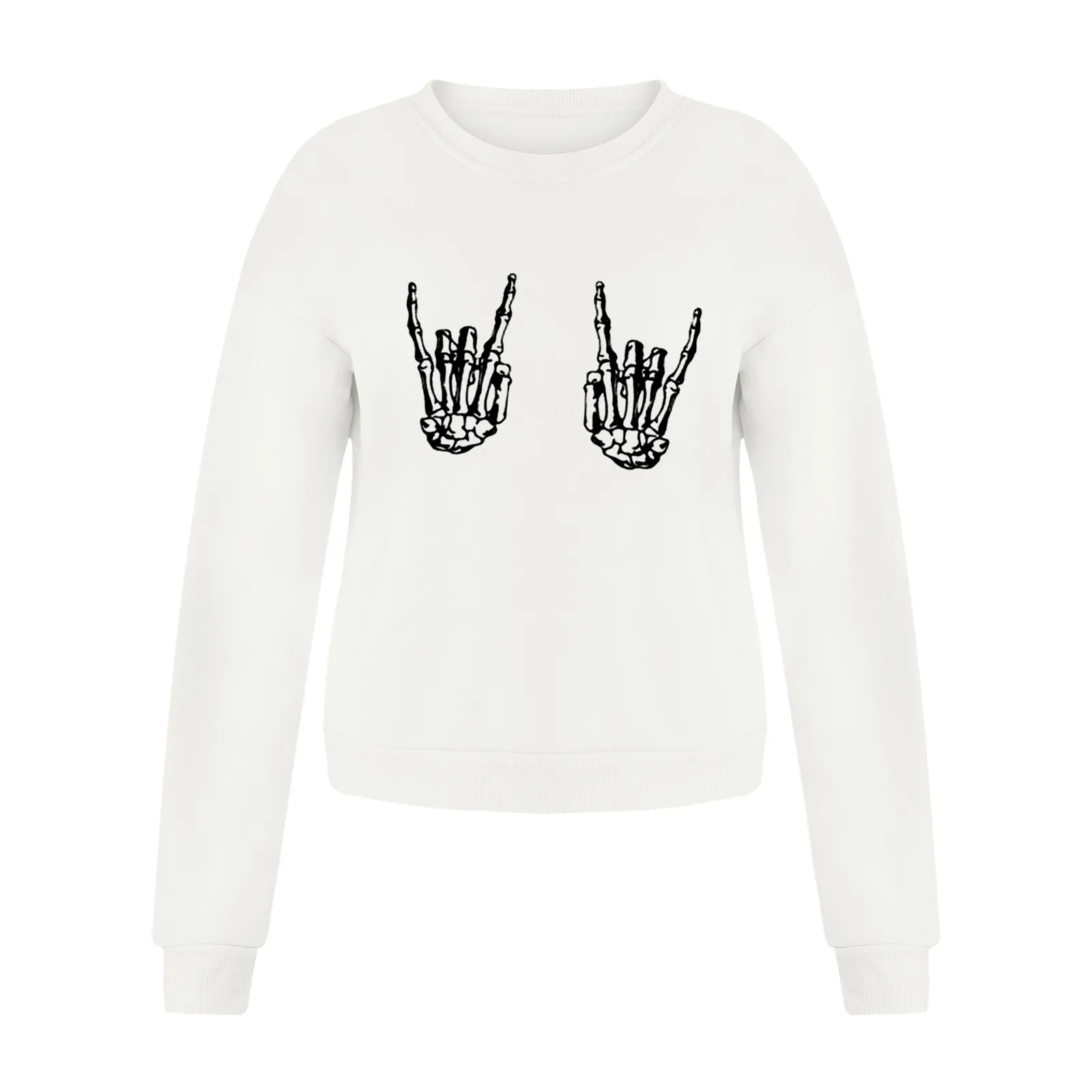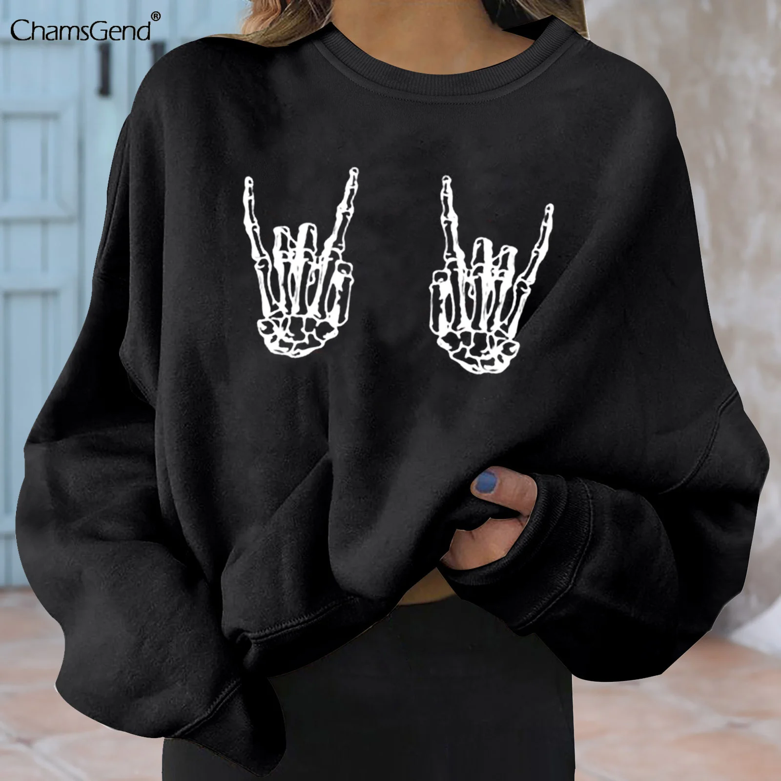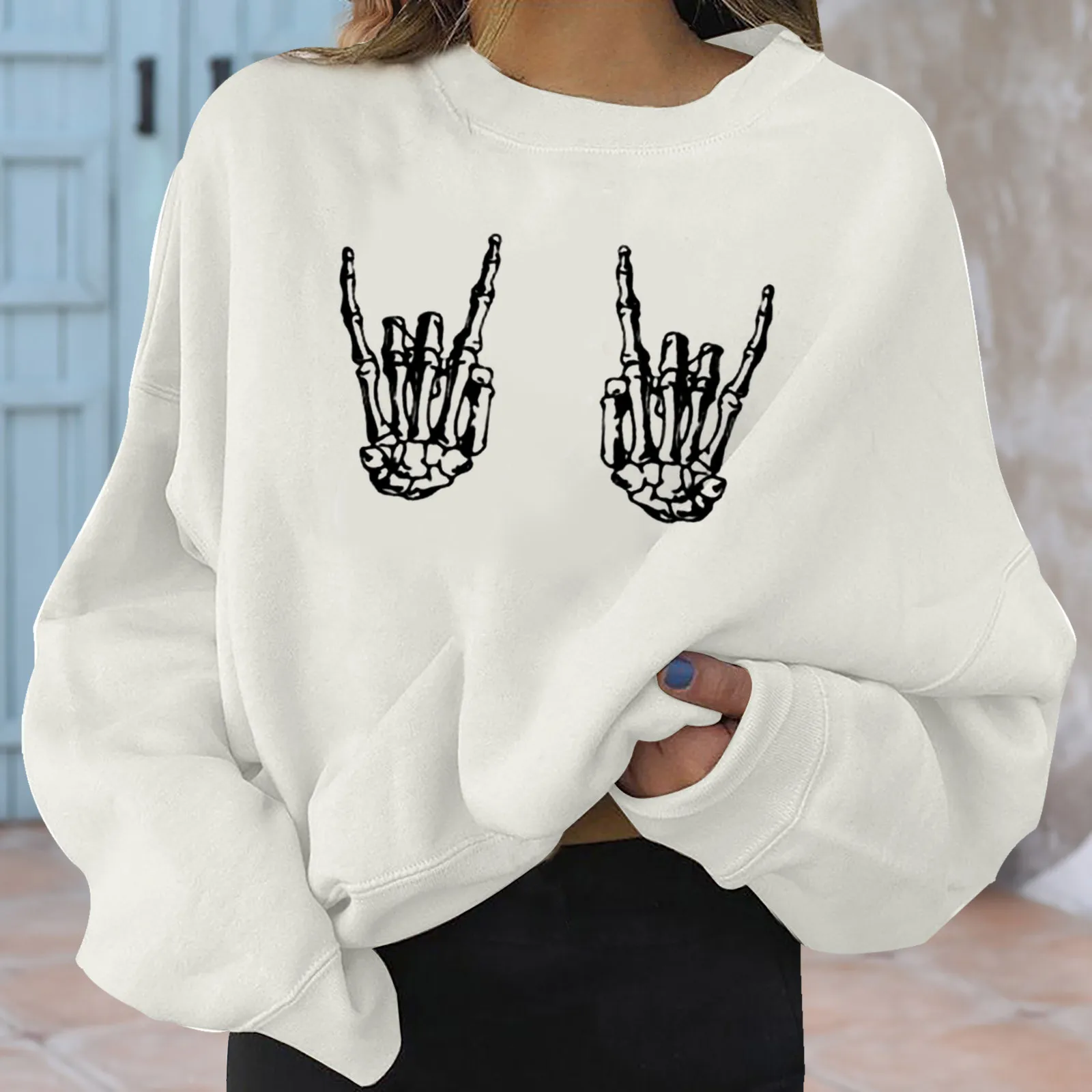 Новинка 2021, свитшот большого размера, Женская Осенняя уличная одежда, худи с принтом черепа и жеста, пуловеры в стиле Харадзюку для девушек