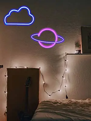 Неоновые вывески с облаками и планетой, настенный декоративный светодиодный светильник с питанием от USB или аккумулятора для спальни, гостиной