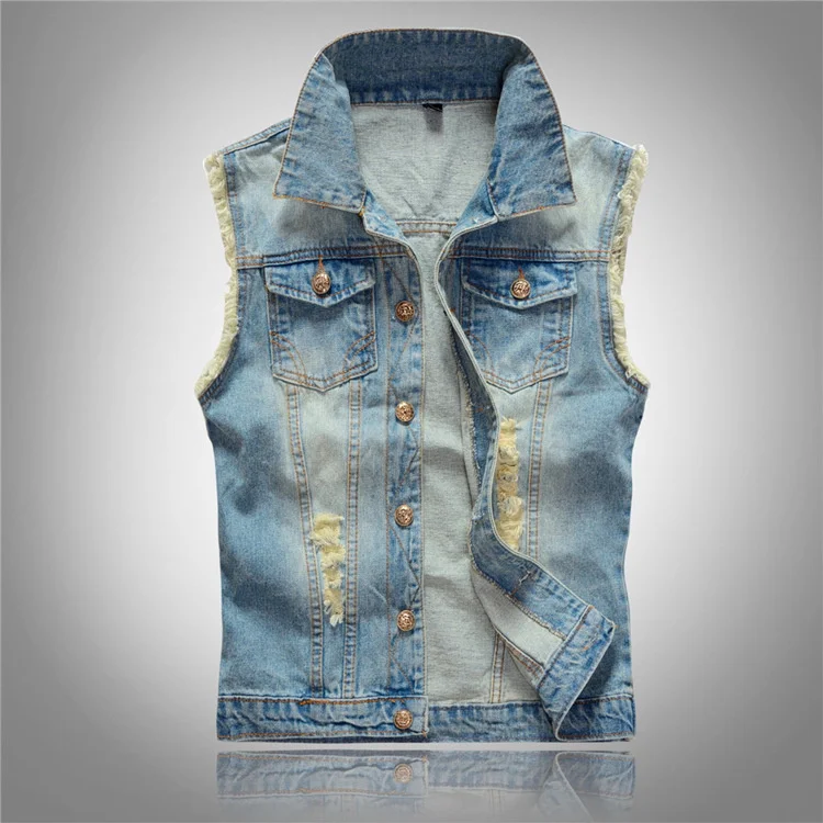 Джинсовая безрукавка мужская с дырками, приталенная верхняя одежда из денима, мотоциклетный синий жилет без рукавов, большие размеры 4xl 5xl, на лето