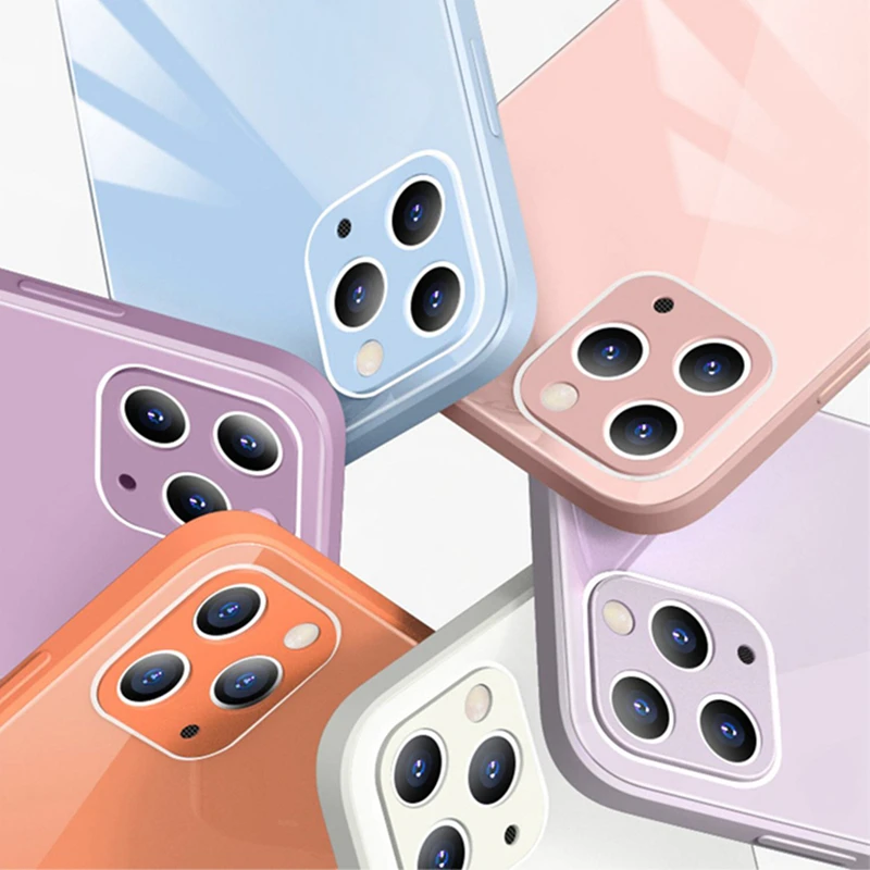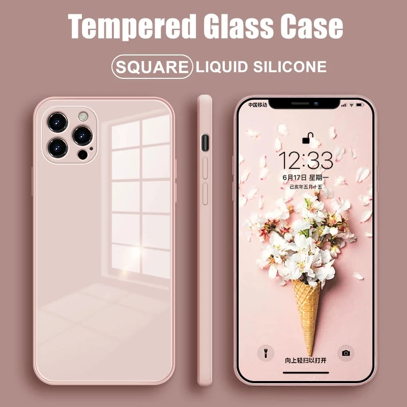 Квадратный чехол из закаленного стекла для телефона iPhone 12 Mini 11 Pro Max SE 2 X XR XS Max 8 7 Plus 12 Pro противоударный чехол из жидкого силикона
