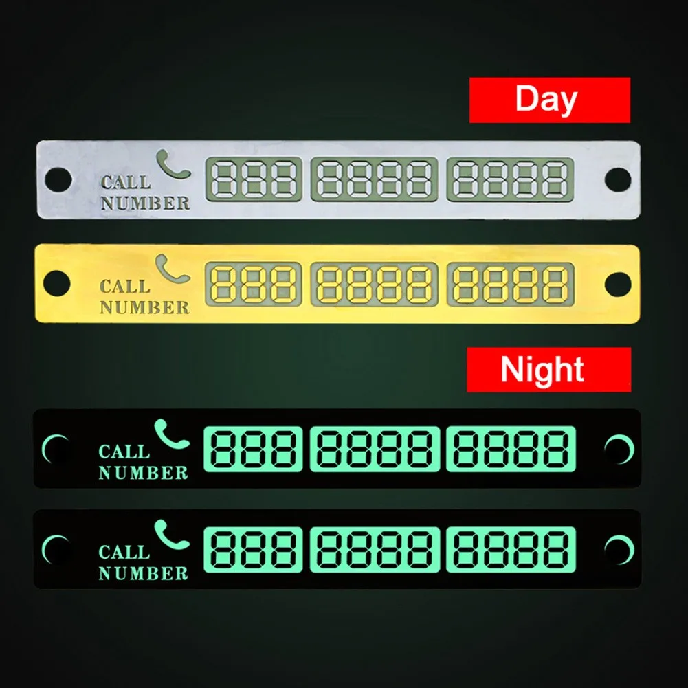 Светящаяся табличка с номером телефона, магнитные наклейки для парковочной карты автомобиля, 15*2 см, сделай сам, золотые светящиеся аксессуары для салона автомобиля, запчасти для грузовика
