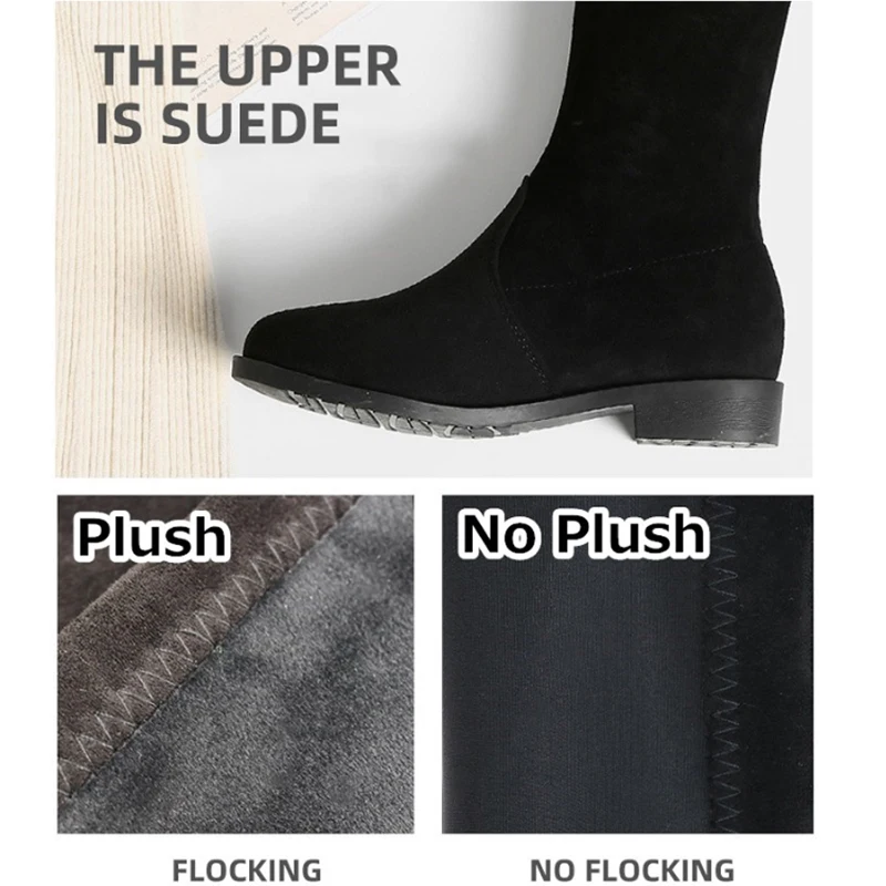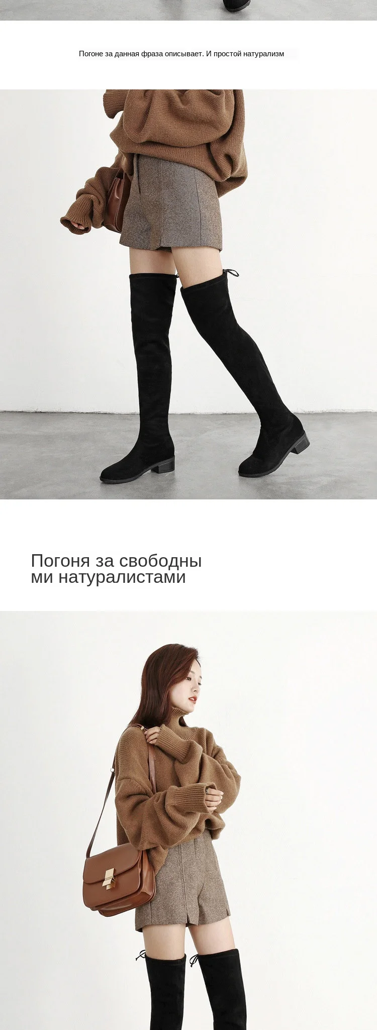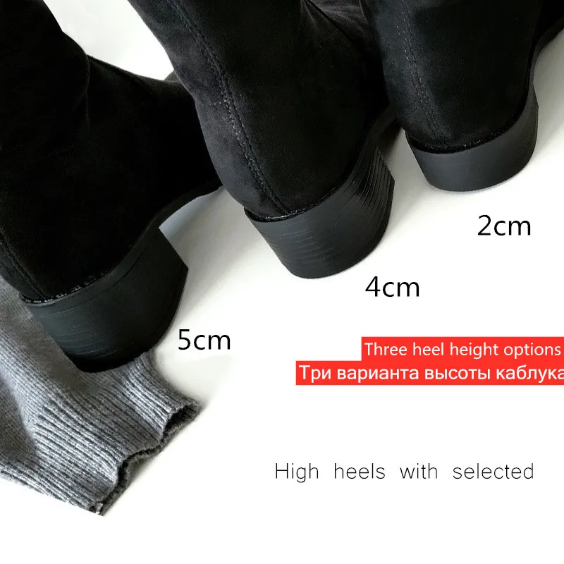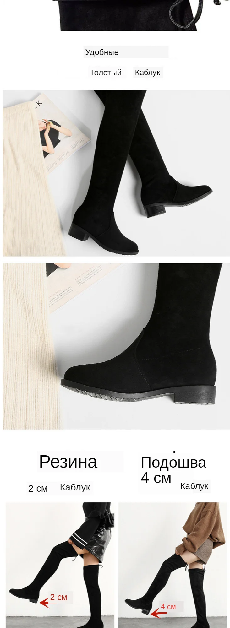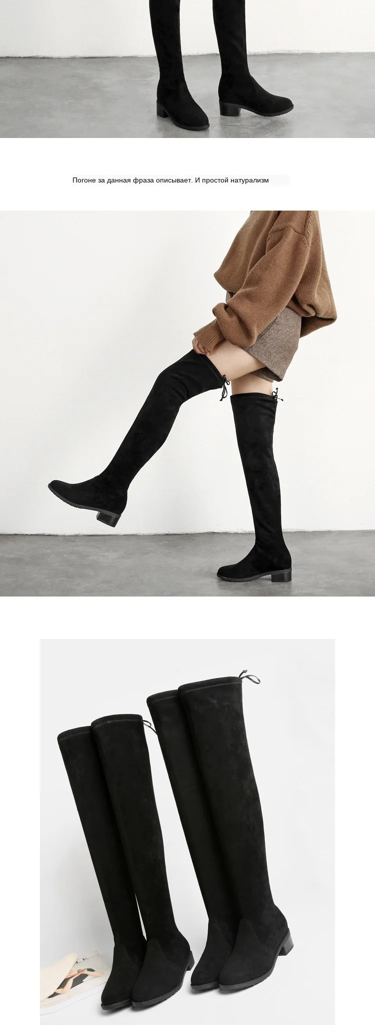 Женская Черная облегающая теплая обувь; Коллекция 2021 года; Большие размеры 44; Женские сапоги до бедра; Зимние Сапоги выше колена; Женские эластичные сапоги; Botas altas Mujer