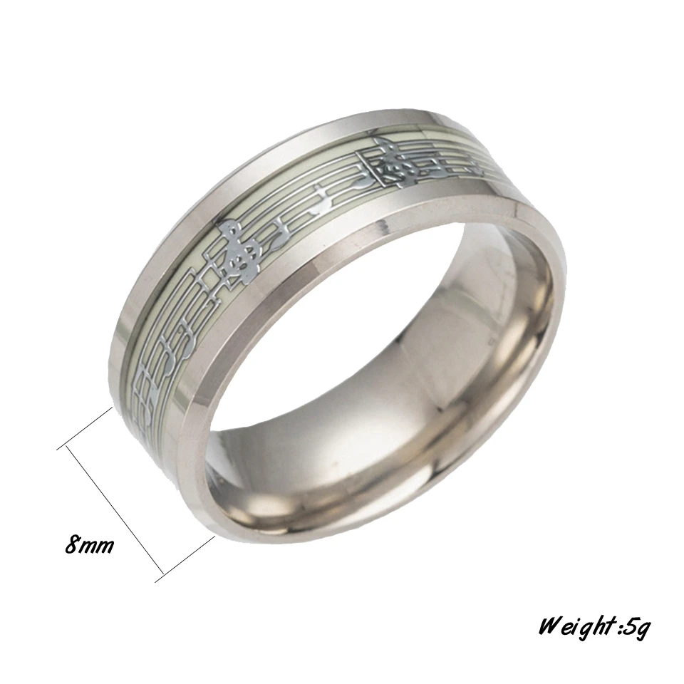 Новинка, светящиеся кольца BAECYT с музыкальными нотами для мужчин и женщин, кольца из нержавеющей стали с зеленсветильник Том, светящиеся в темноте, обручальные кольца, модные ювелирные изделия