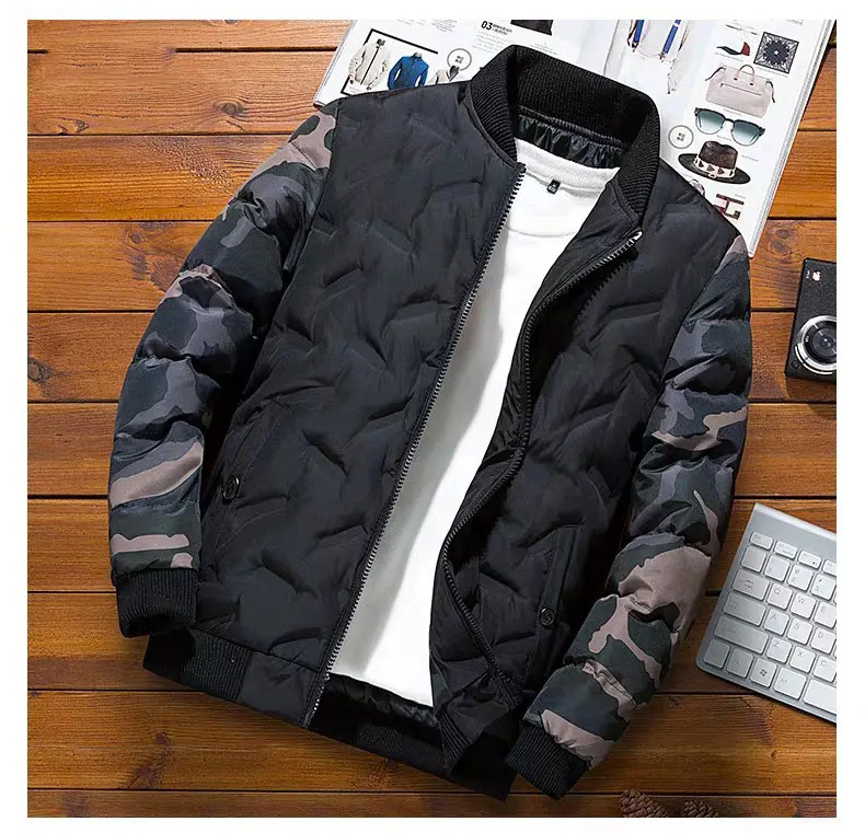 Куртка-бомбер мужская зимняя, теплая, камуфляжная, 2021