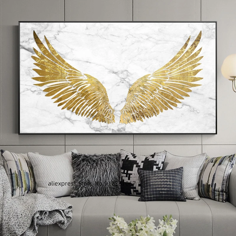 Золотые Крылья Ангела мраморный фон абстрактный настенный плакат холст печать картина современное искусство украшение картина