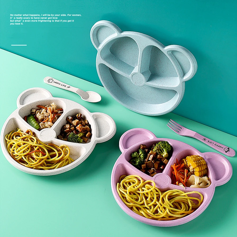 Детская миска для кормления, ложка и вилка, детская пищевая посуда, пшеничная солома, посуда, столовая посуда, набор, анти-Горячая тренировочная тарелка