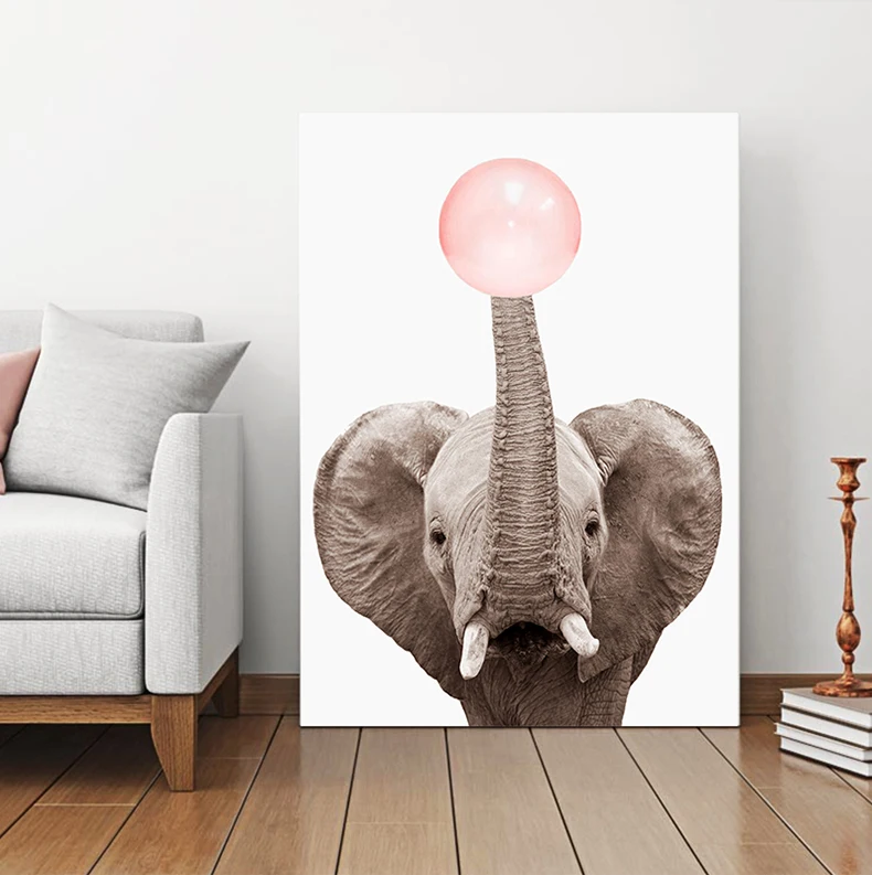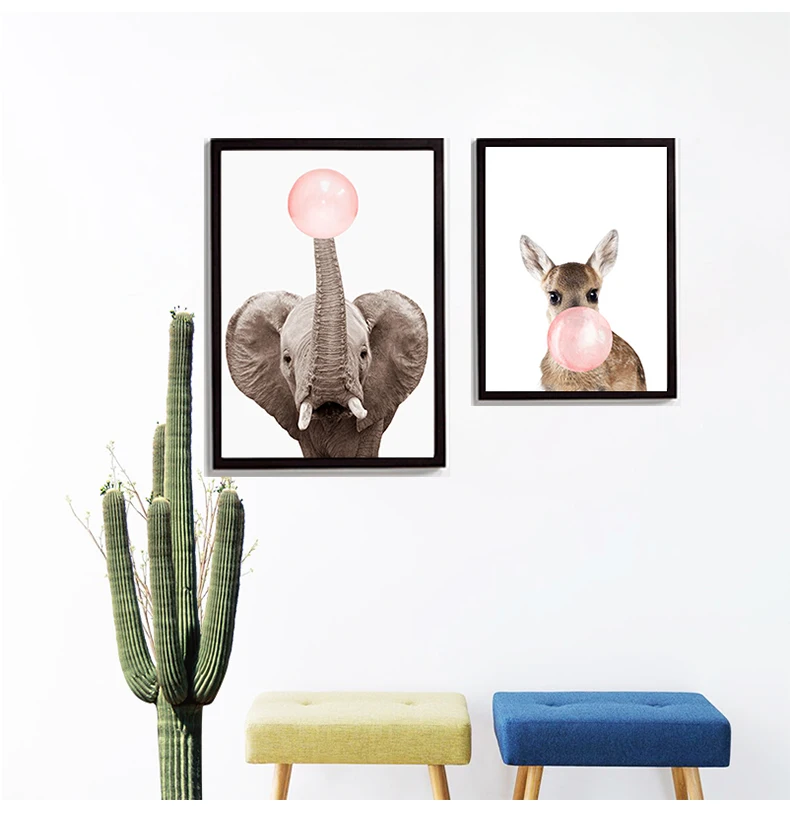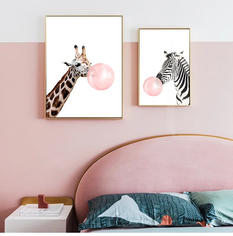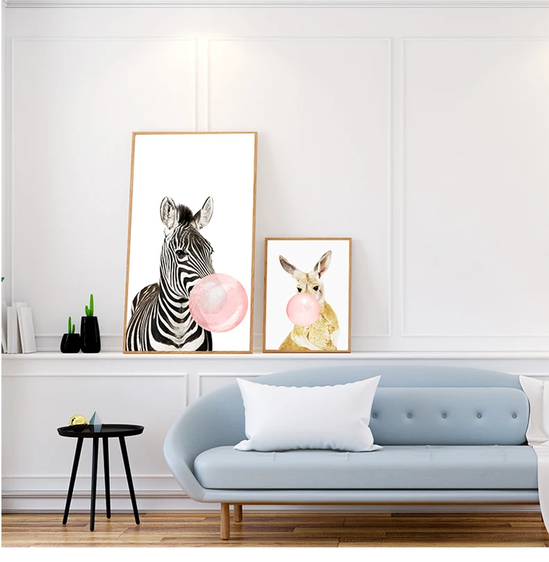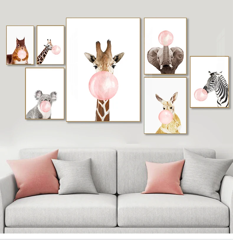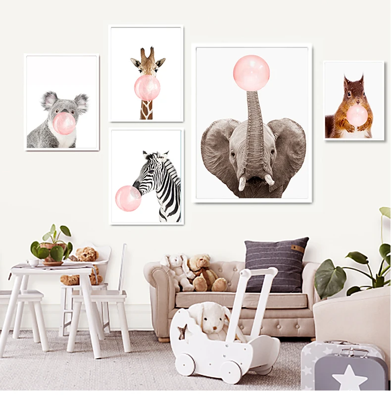Картина с изображением животных из мультфильма, картина для детской спальни, зебры, жирафа, коалы, слона, жевательной резинки