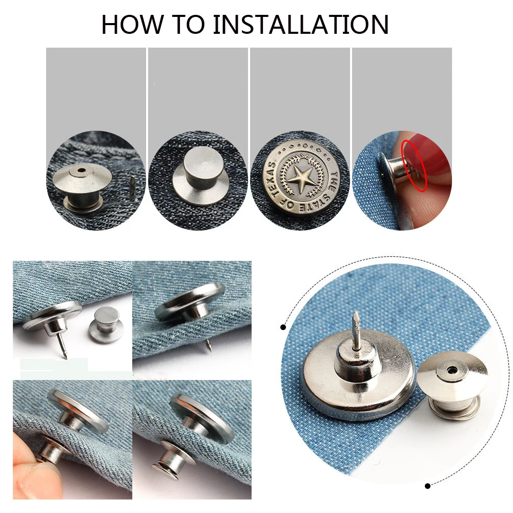 2 шт. булавка для джинсов, идеальная Регулируемая сменная джинсовая кнопка, без шитья, без инструмента, мгновенная съемная металлическая кнопка, Прямая поставка