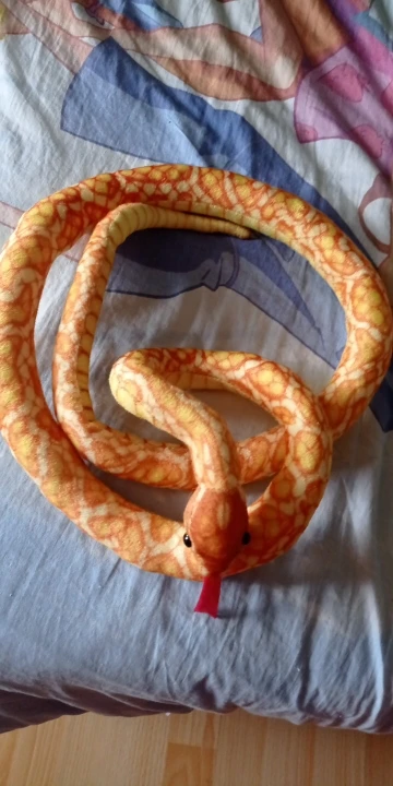 Красивая плюшевая змея, очень мягкая и хорошо пропорциональная по сравнению с выбранным размером. Я люблю это, это очень реалистично.