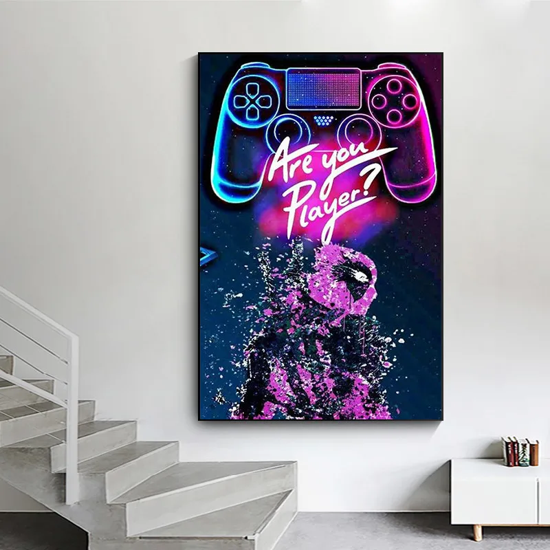 Картина на холсте с игровой ручкой, красочные настенные художественные принты, картины-постеры для геймпада, украшение для детской комнаты, подростков, игр, Декор для дома