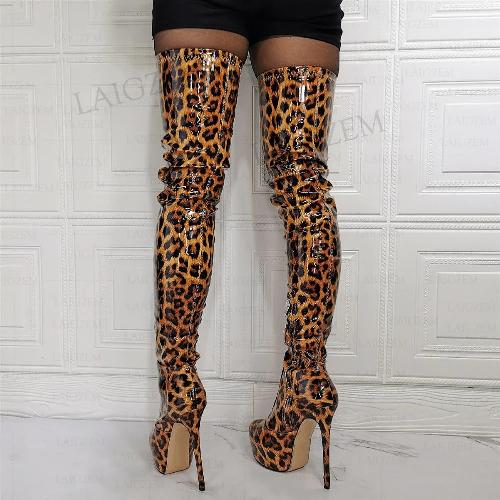 Женские высокие сапоги на молнии SEIIHEM, блестящие Сапоги выше колена на тонком высоком каблуке, вечерняя обувь на платформе для косплея, женская обувь большого размера 41 43 47 52