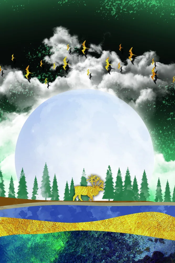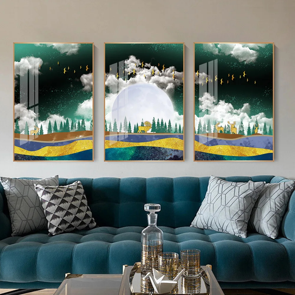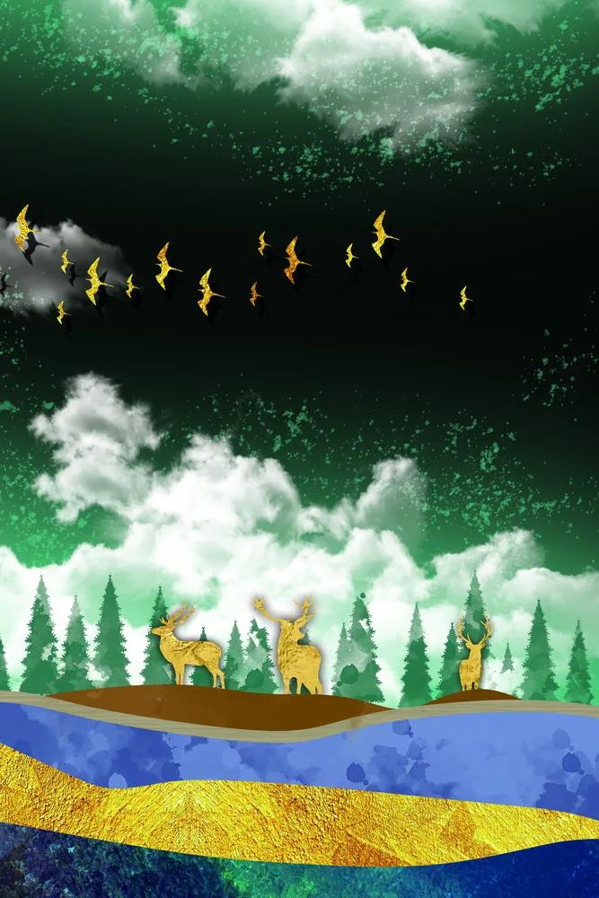 Абстрактный Золотой постер рисунок оленя на холсте, постер с синим ...