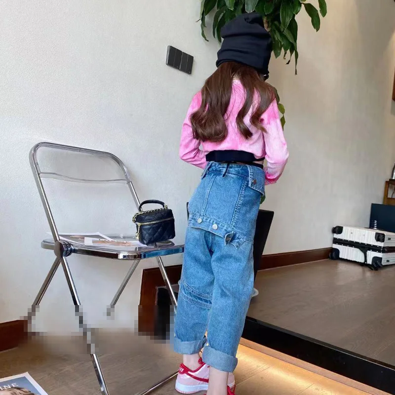 Демисезонные брюки для девочек, детские джинсовые брюки, уличная од...