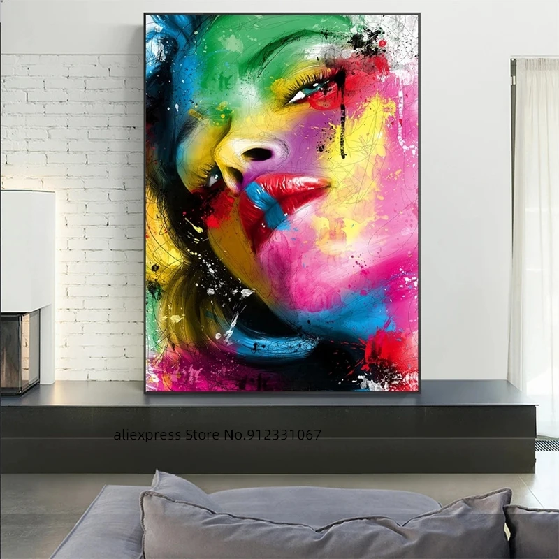 Современный граффити искусство белая кожа девушка лицо Искусство Печать на холсте красочная фотография женщина Декор для дома плакат