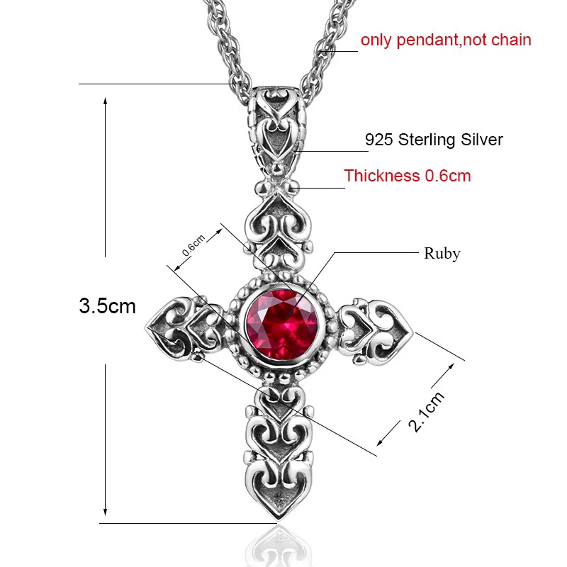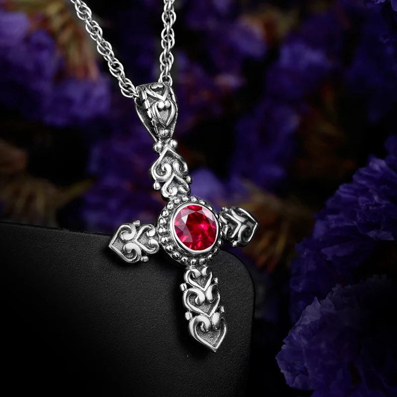 Женская подвеска в виде креста, винтажная Подвеска из стерлингового серебра 925 пробы с искусственным Рубином