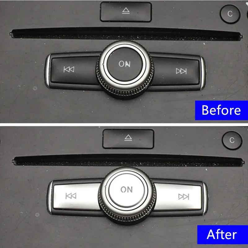 Автомобильный Стайлинг, центральная консоль, мультимедийный переключатель, Кнопки громкости, блестки, покрытие, наклейки для интерьера для Mercedes Benz C E Class W204 W212 GLK X204