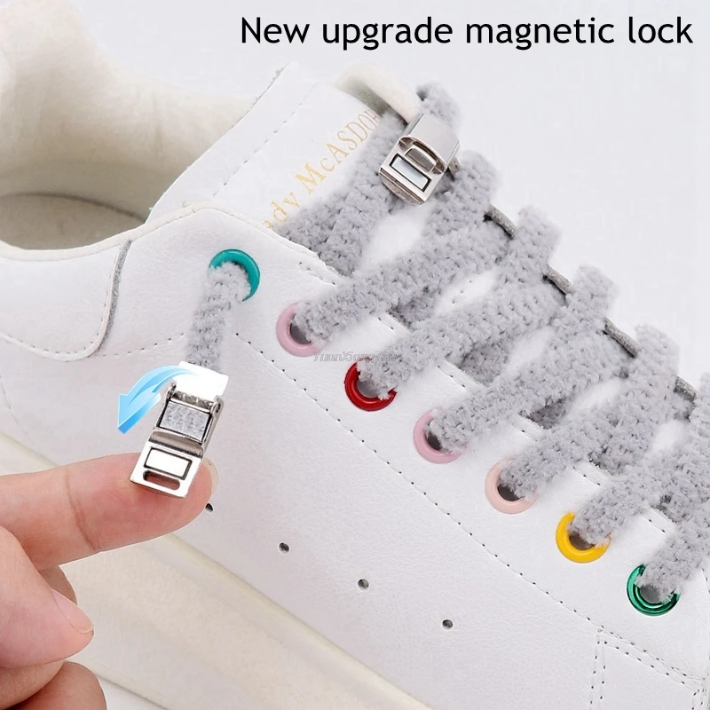 Шнурки с магнитным замком новые плюшевые эластичные туфли без галстука теннисные туфли с кружевами для шнурков детские сапоги для взрослых шнурки один размер подходит всем