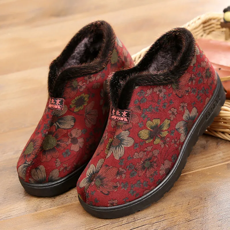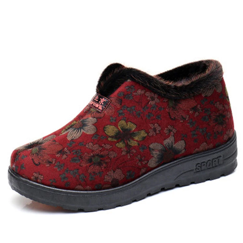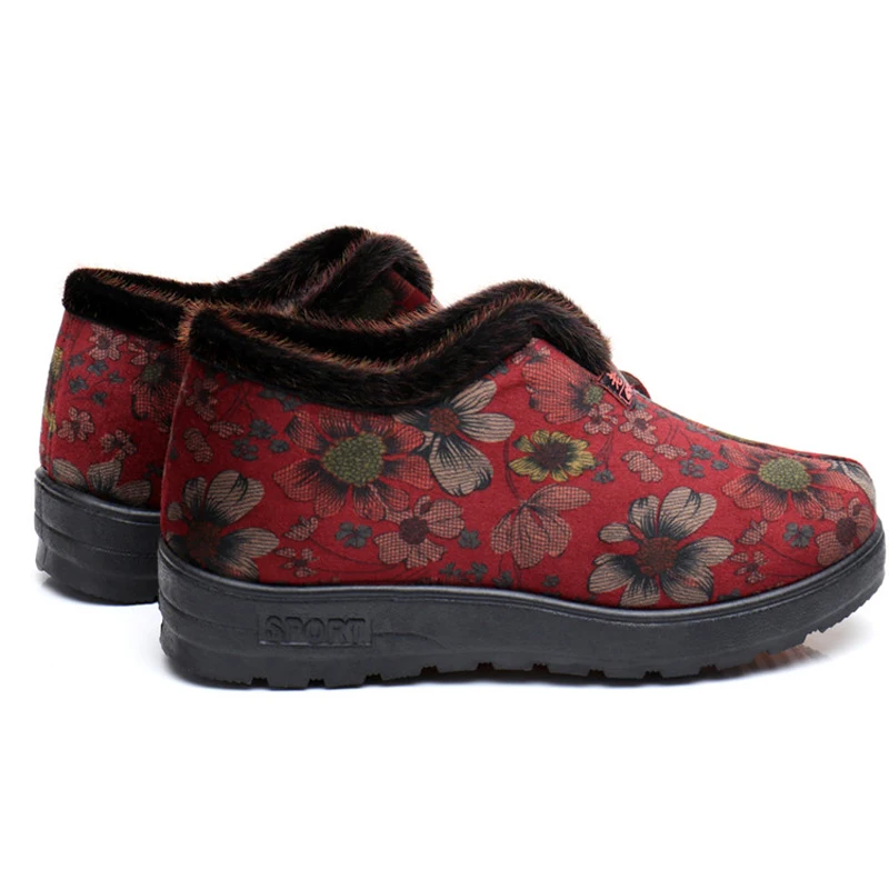 Зимние ботинки, женская обувь, теплые зимние ботинки с принтом, Меховые бархатные хлопчатобумажные удобные ботильоны, Нескользящие ботинки для пожилых