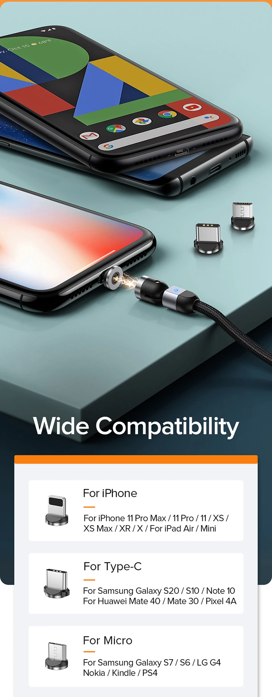 Магнитный кабель USLION с поворотом на 540 градусов для быстрой зар...