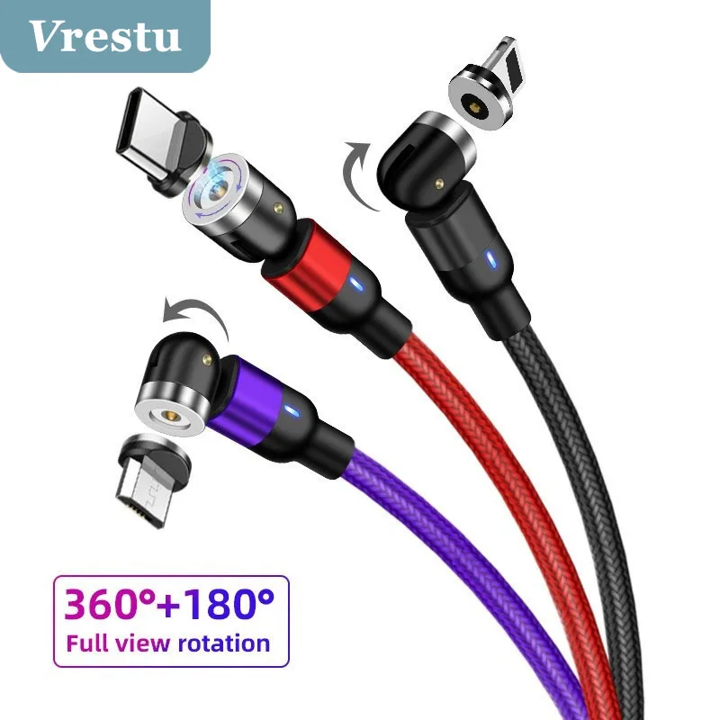 Магнитный кабель для быстрой зарядки 3 в 1 с поворотом на 540 градусов для iOS и iPhone, кабель типа C USB C, кабель Micro USB для Android, внешний диаметр 2 м