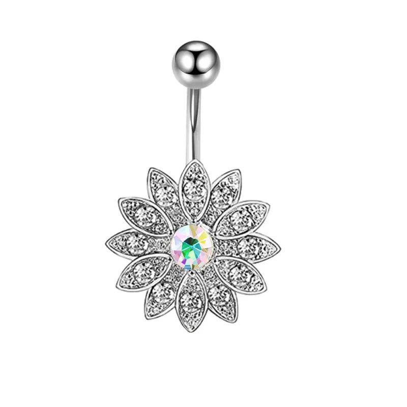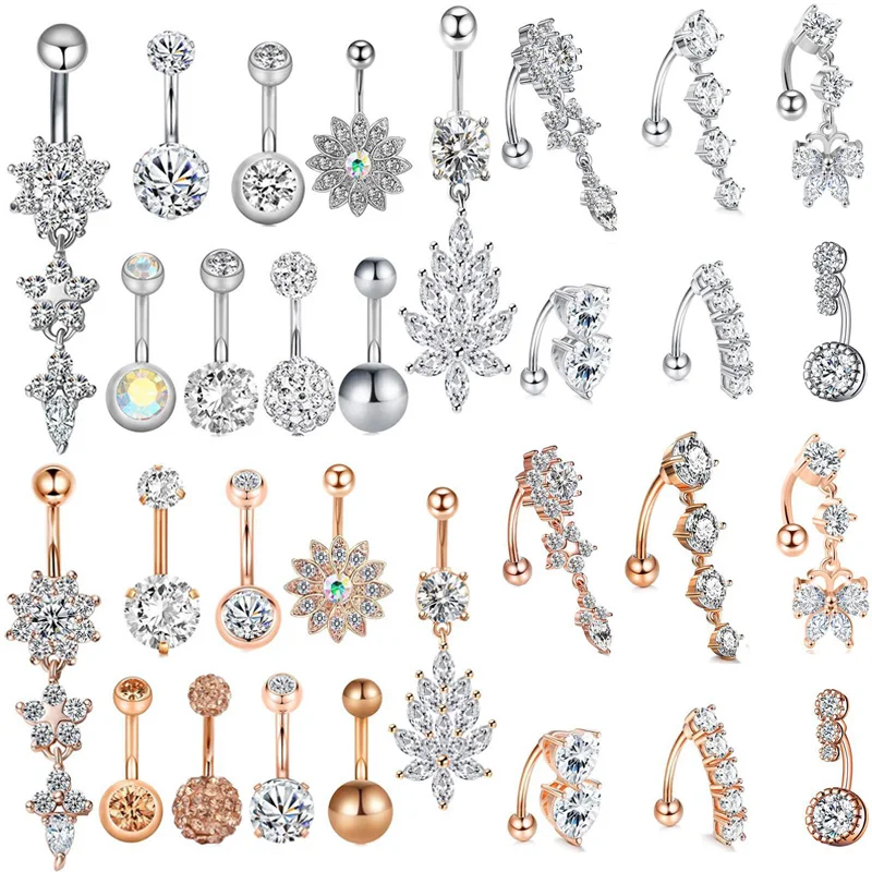 Женское кольцо для пупка из нержавеющей стали, с подвеской-кристаллом