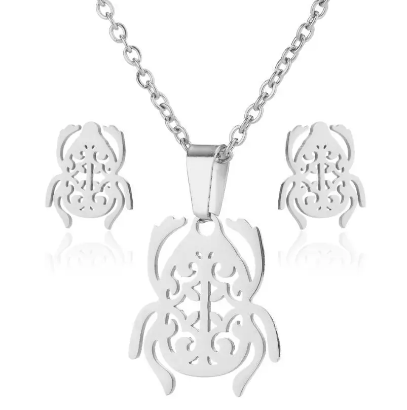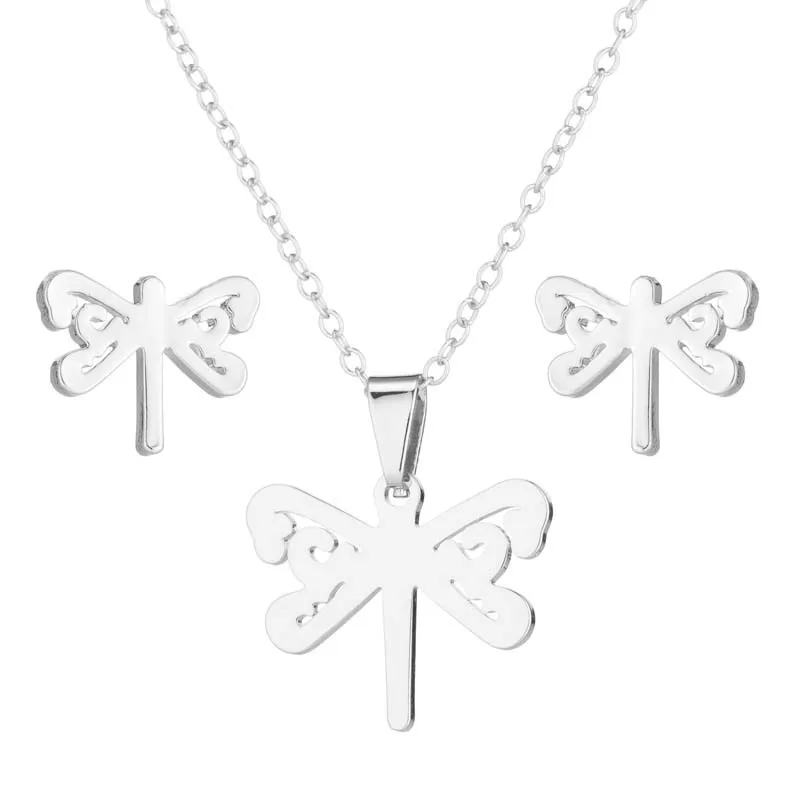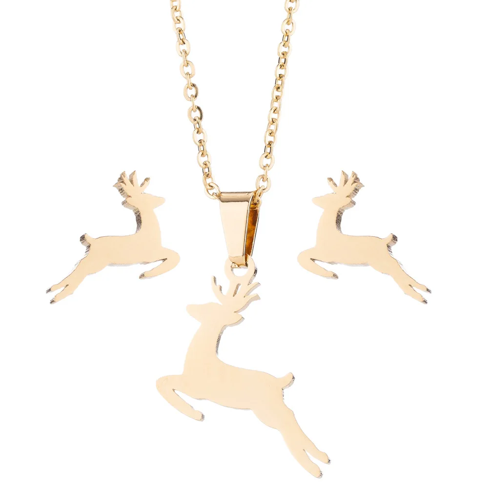 Комплект ювелирных изделий из нержавеющей стали с подвеской в виде кота, летающей лошади, бабочки, стрекозы, лягушки, оленя, розы, 2021