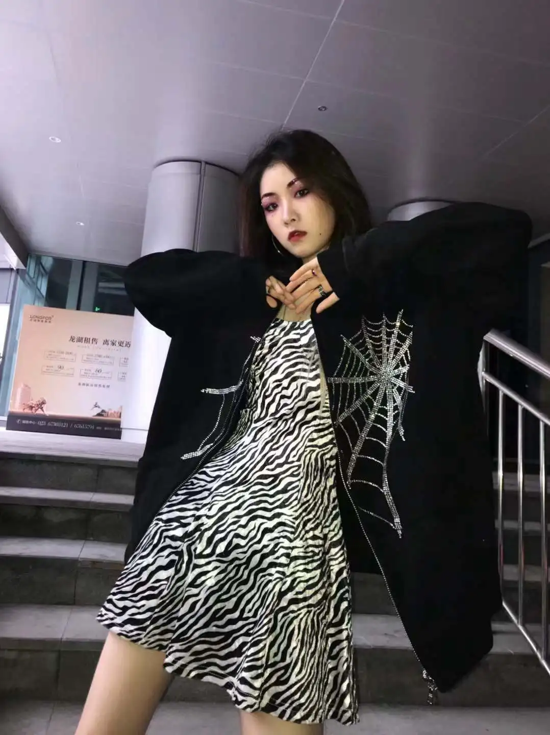 Толстовка Стразы в готическом стиле на молнии с изображением паутины, женская уличная одежда Y2K, свободная куртка с капюшоном, Парные толстовки большого размера в стиле Харадзюку, панк