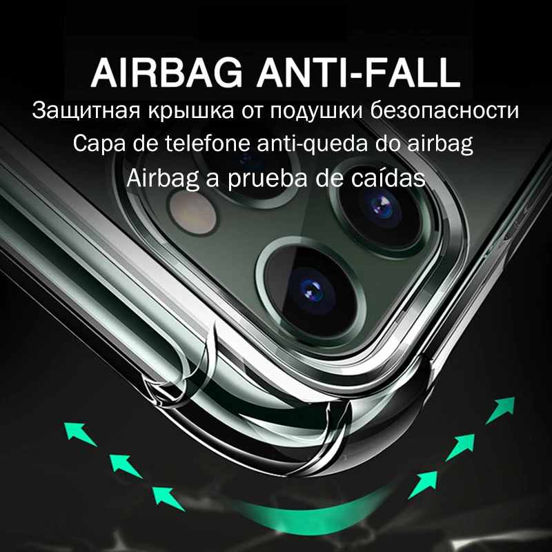Противоударный силиконовый чехол для iPhone 11, 12, 13 Pro, Xs Max, 7, 8, 6s Plus, X, SE, XR, прозрачный