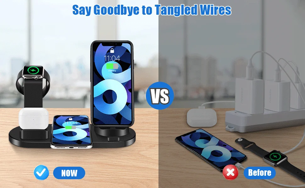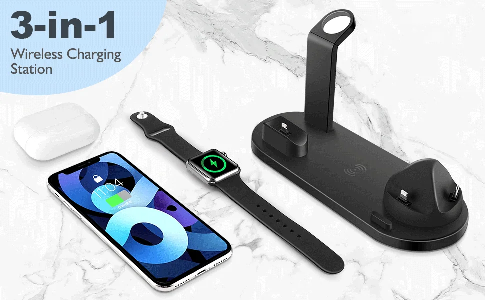 Вращающееся Беспроводное зарядное устройство 3 в 1 зарядная док-станция для iWatch и Airpods Pro зарядная станция зарядная подставка для iPhone 12/12 Mini/11 Pro Max/SE/X/XR/Xs Max 8/8 Plus, для телефона Samsung Galaxy Series【 3 в 1 Беспроводное зарядное устройство standэта Подставка для зарядки была специально разработана для сотовых телефонов с поддержкой Qi (для iPhone 12/12 mini/12 Pro/12 Pro Max/SE 2020/11/11 Pro/11 Pro Max/X/XS MAX/XR/8/8 Plus/Samsung Galaxy S20/S10 /S9 /S8 /Plus/S7) для телефонов без Qi требуется приемник беспроводной зарядки qi. Полная совместимость с наручных часов iwatch, 6/iPhone SE/5/4/3/2/1, Airpods 1/ 2/ Pro.