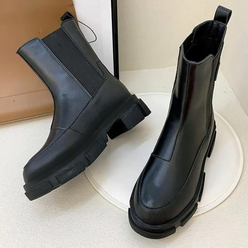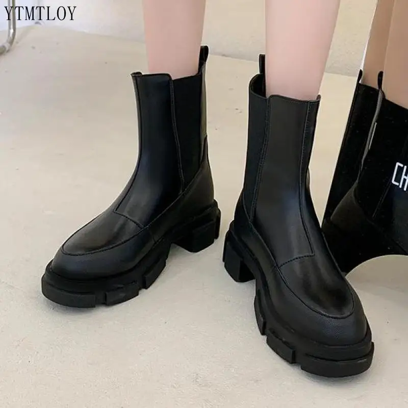 Женские ботинки челси на толстой подошве, боевые ботинки средней дл...