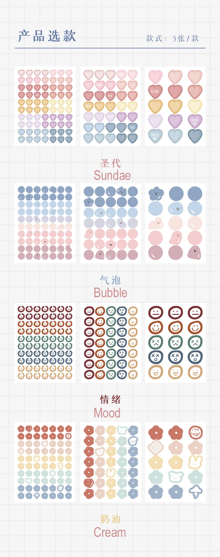 Набор стикеров для скрапбукинга, 3 шт., канцелярские товары для школы