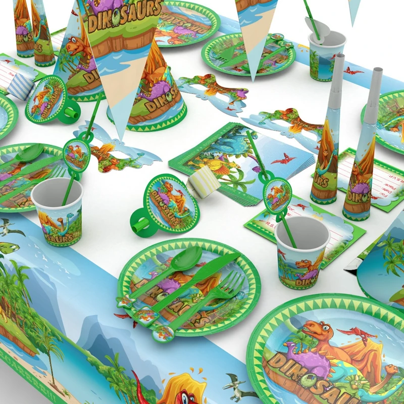 Зеленая динозавр, одноразовая посуда, Мультяшные принадлежности для...