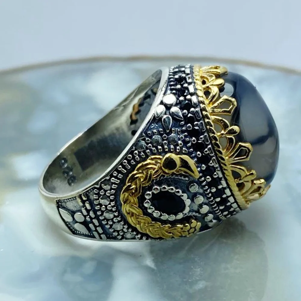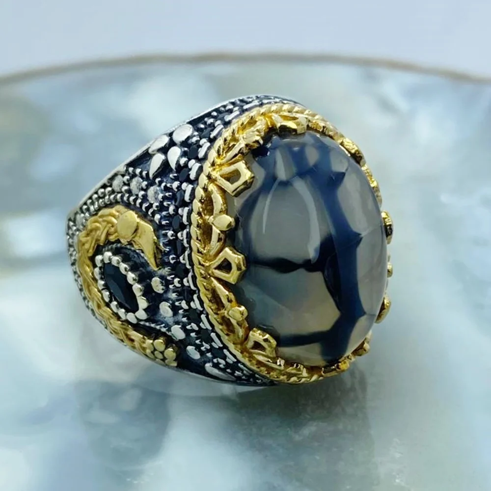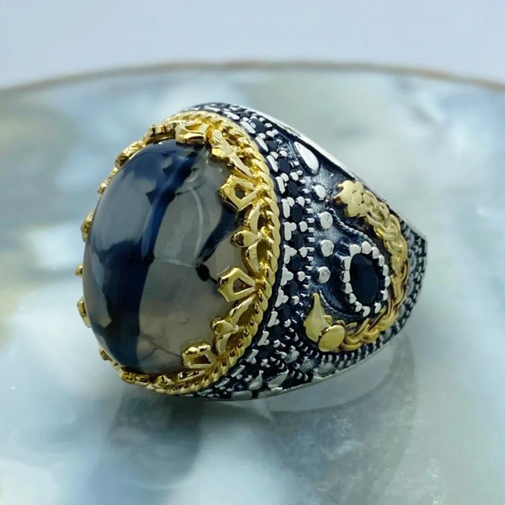 Кольцо мужское из серебра 925 пробы, ручной работы, с турецким агатом