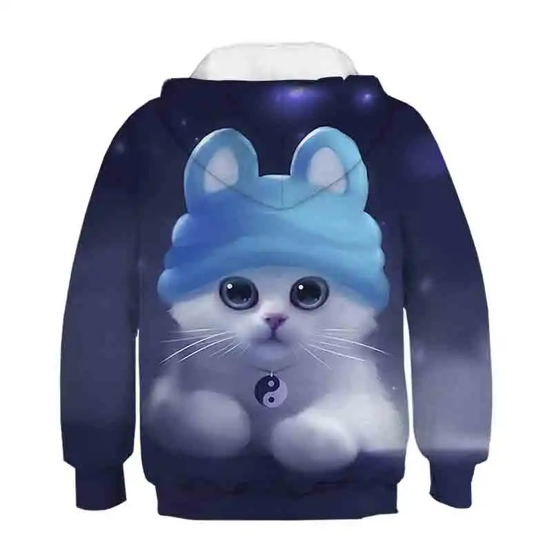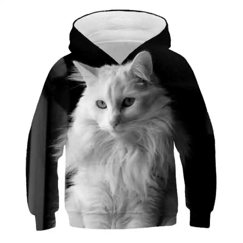Толстовка для мальчиков и девочек, с изображением кота, Осенняя детская толстовка с 3D принтом, милые Пуловеры свободного кроя, 2021
