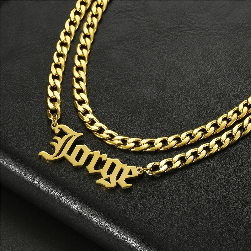 Индивидуальное винтажное ожерелье из нержавеющей стали с именем, индивидуальное Золотое колье с буквами отметки 5 мм, подвеска с именной табличкой, подарок для мужчин и женщин