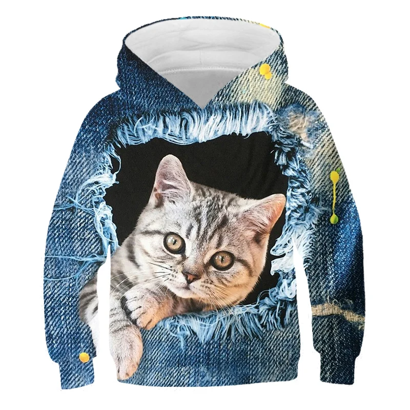 Толстовка с 3D рисунком кота, детские толстовки для мальчиков и дев...