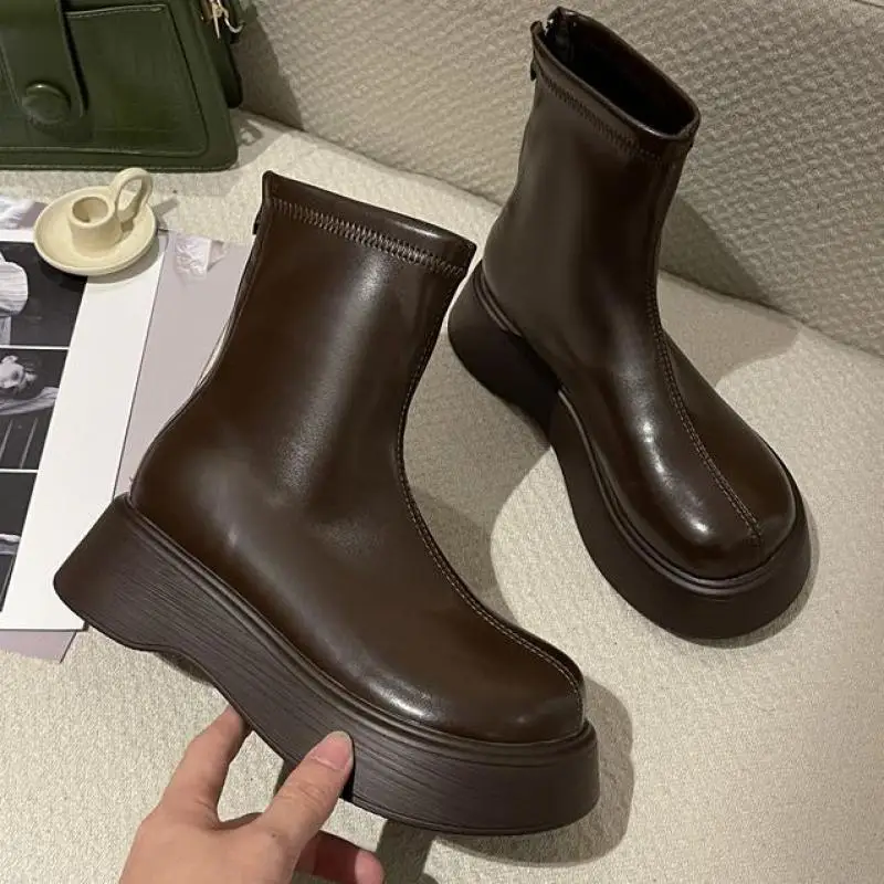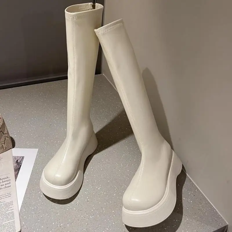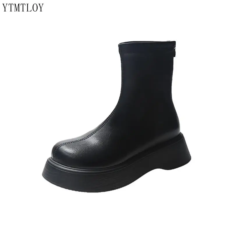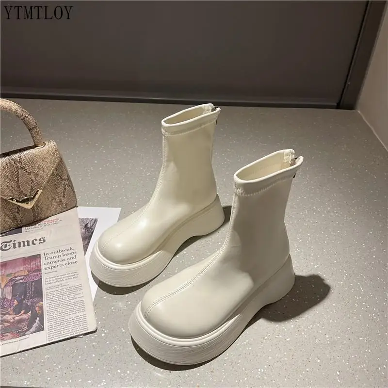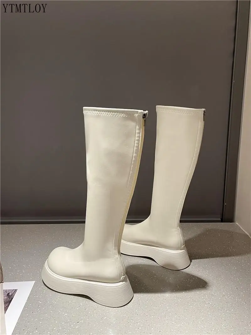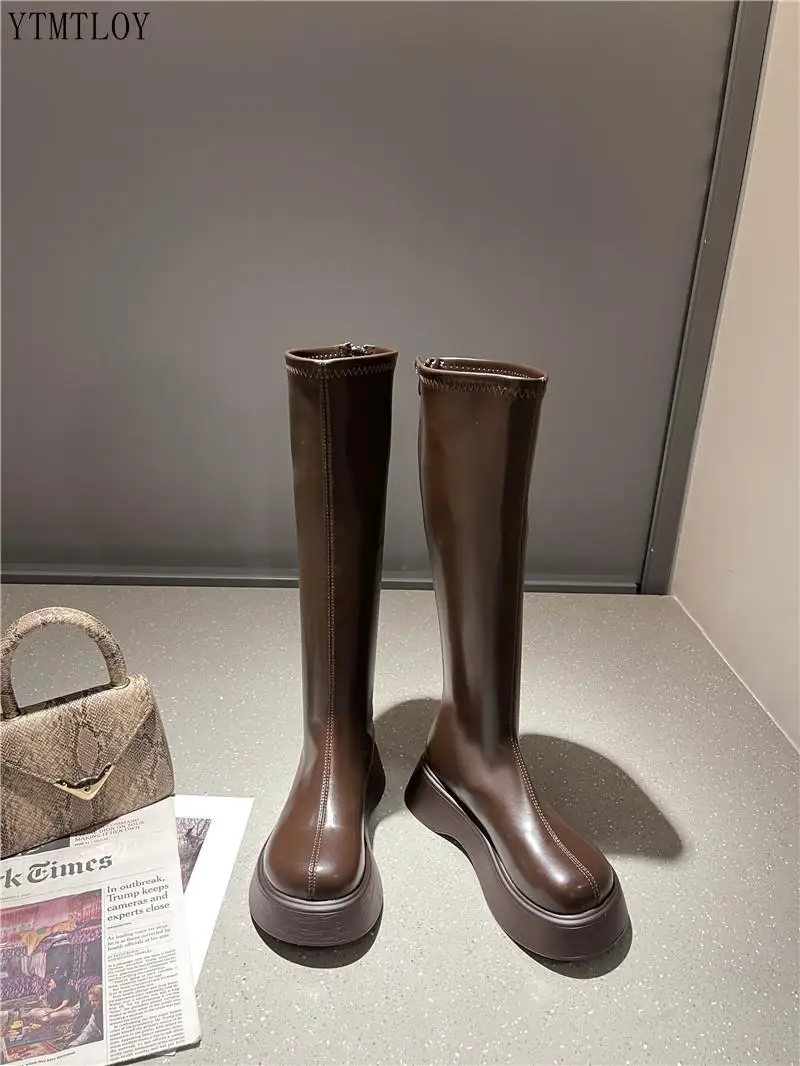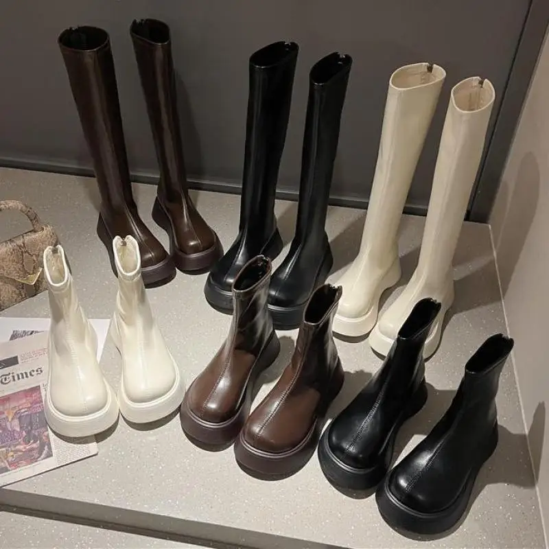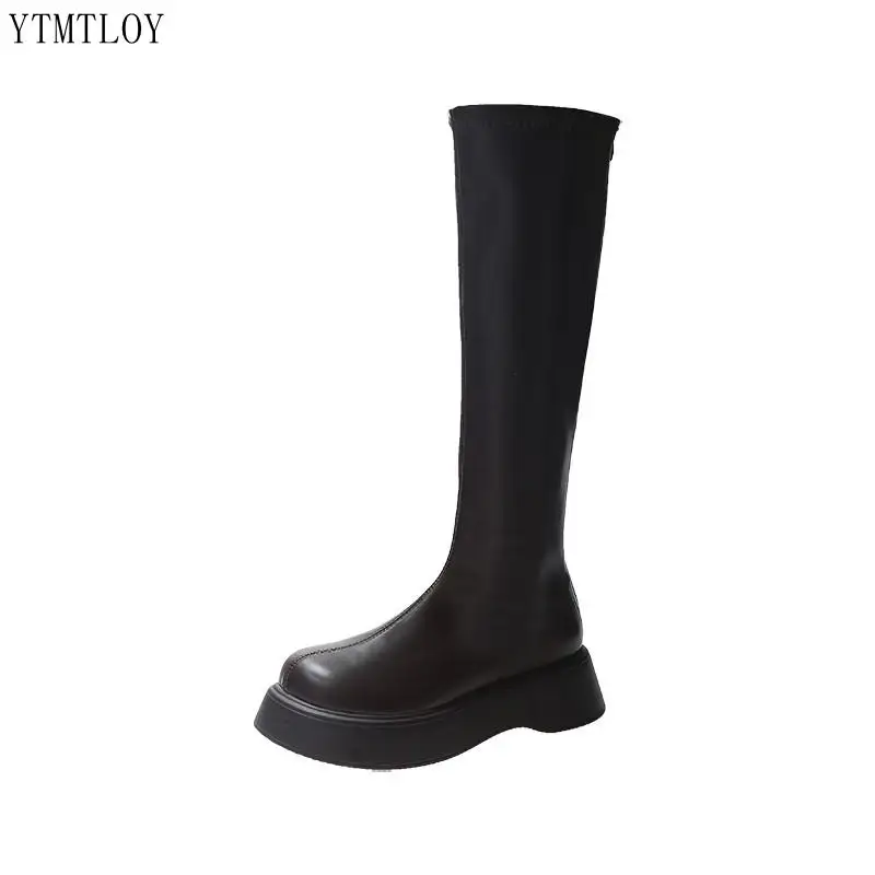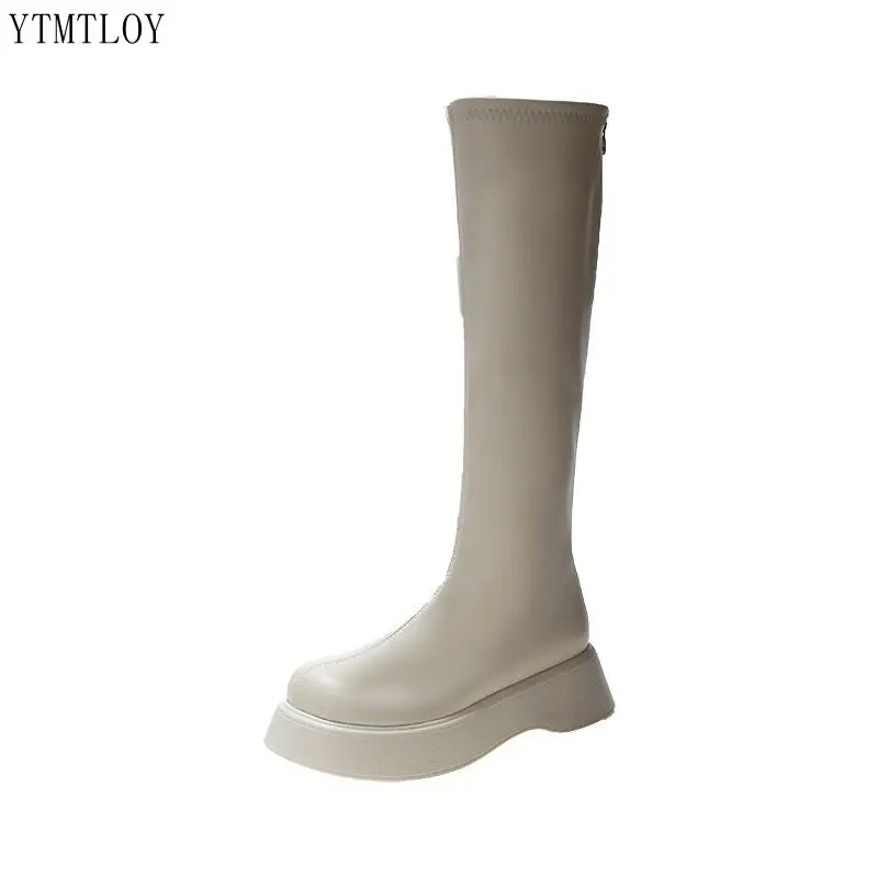 Женские кожаные туфли на платформе сапоги с толстой подошвой, новинка 2022, роскошные брендовые модные дизайнерские туфли Ytmtloy до колена, на молнии, женские туфли