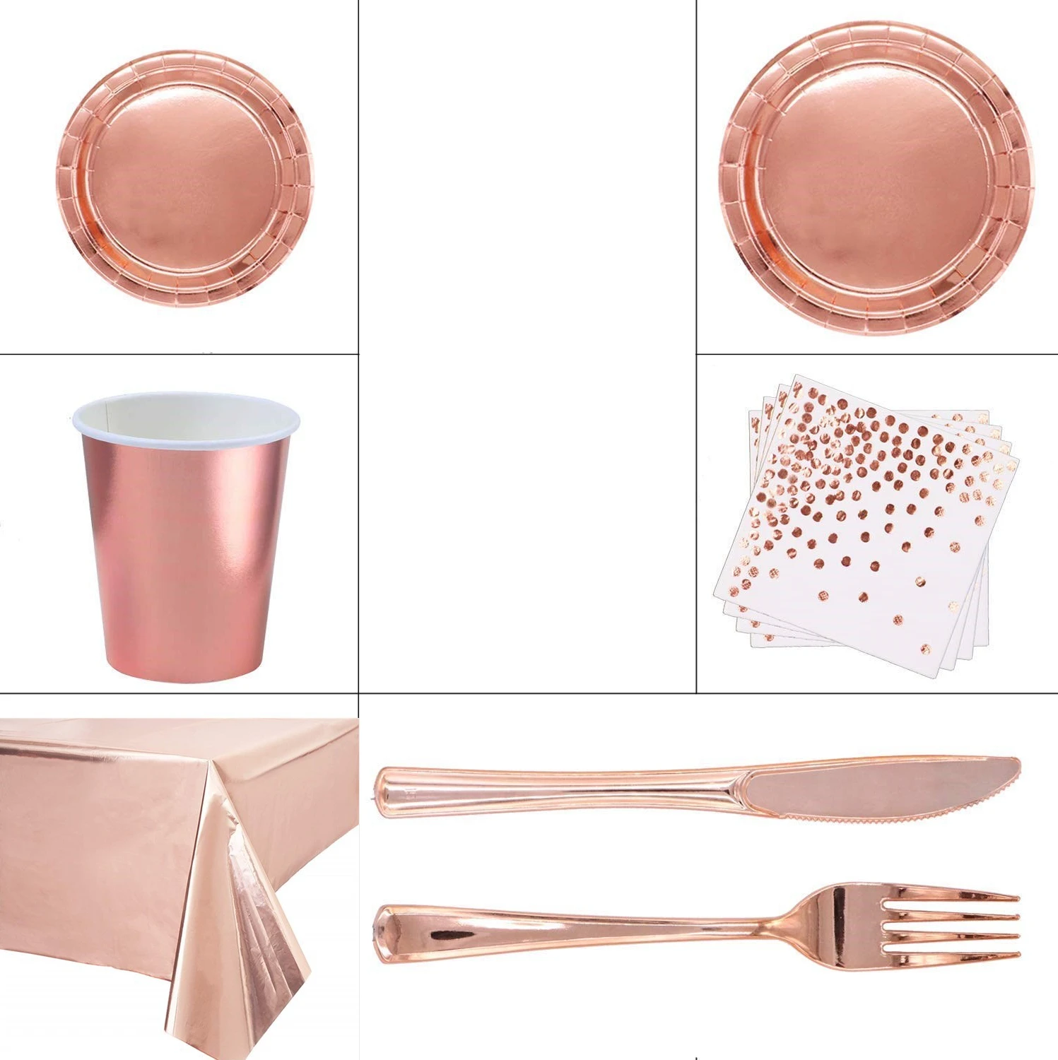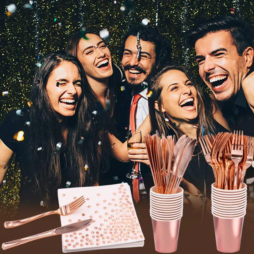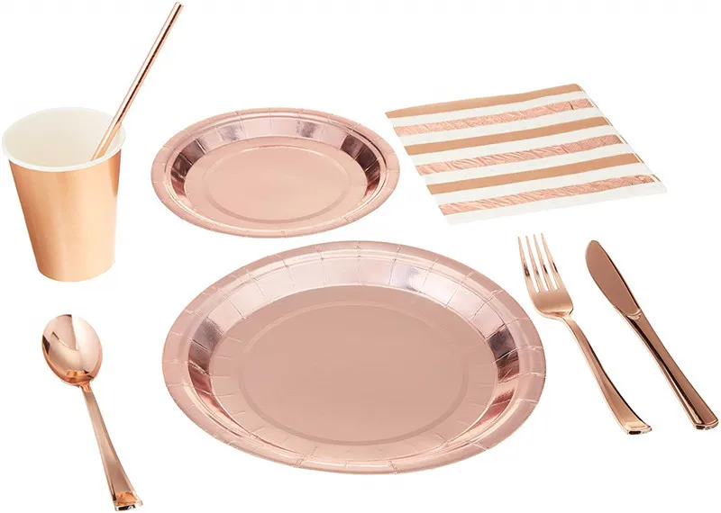 Розовое золото вечерние набор одноразовой посуды бумажные стаканчик...